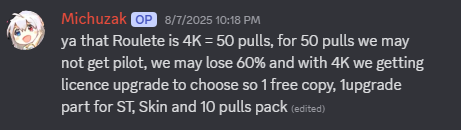 Осторожней с пулами в баннер персонажей. Пишут что тут два 60/40 и только на 200 пуле гарант. При этом проебы 60/40 не переносятся на следующий баннер, переносится только число пулов до следующего флипа.