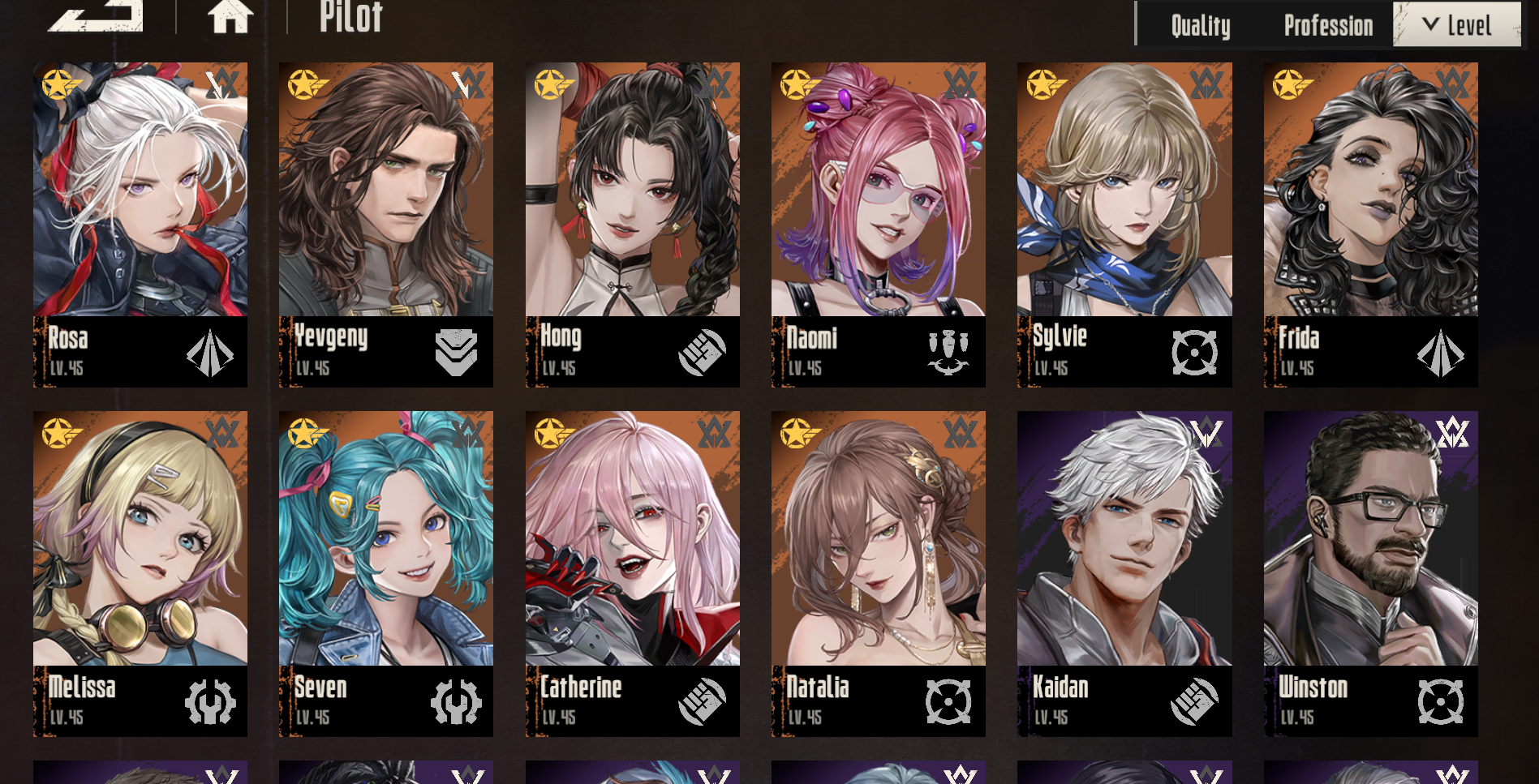 Да играю чуть больше недели. Пока 32 уровень. Но успел забрать Хонг, Розу, Сильвию и Евгения. А вот с роботами засада - из баннеров только Гласию и ХR забрал.