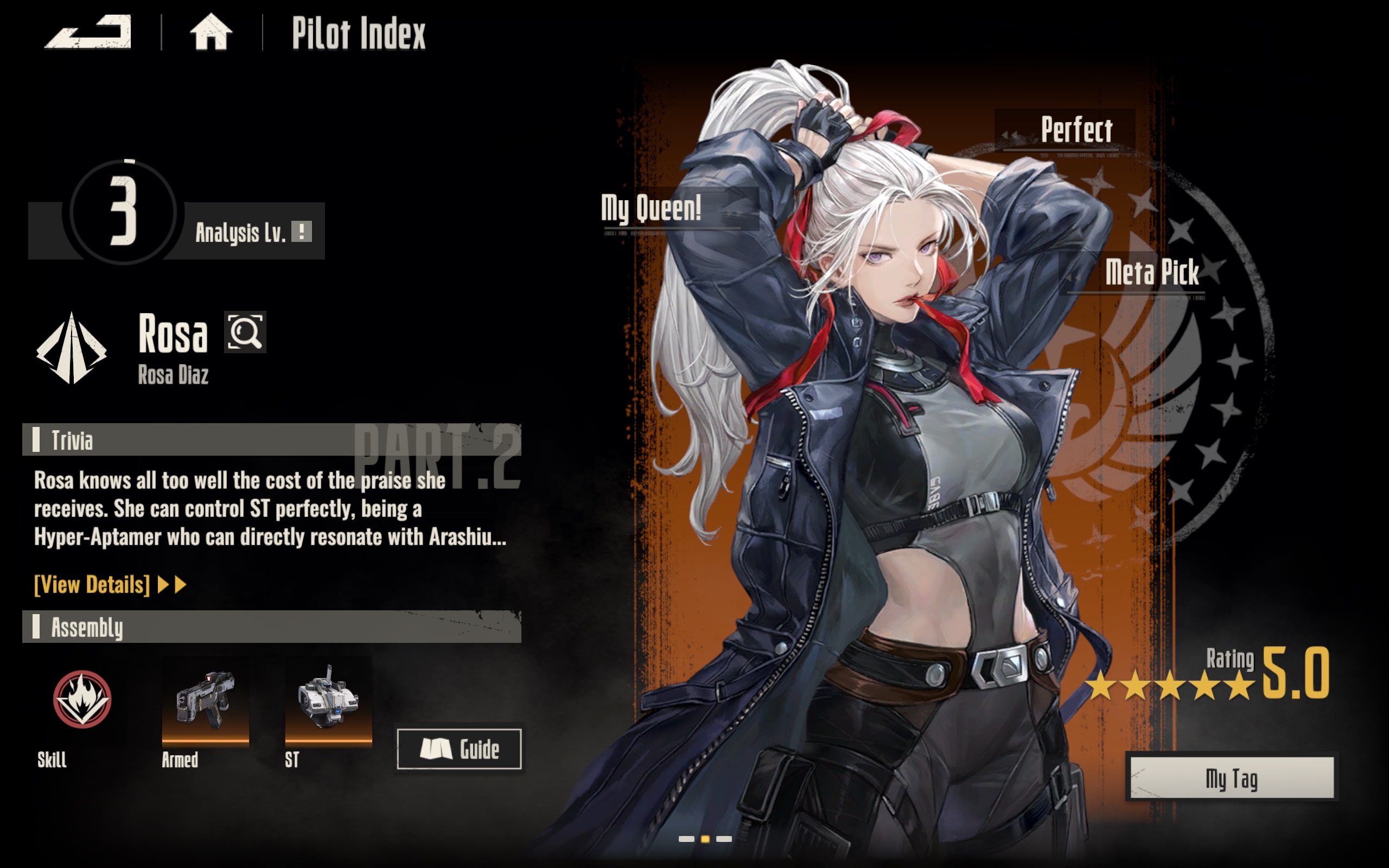 Вкатился. >>5377178 Про Розу читал, что типа к эндгейму будет крутая - там и аое с рельсы, и с двух автоматов может настрелять ну как в сюжетке типа. Сильвия в принципе злая сразу - конечности только в путь отстреливает и подвижная на лайт мехе. Там ещё талант будет, что чем дальше от врага, тем урон выше. Мехов вроде бы даже по остаточному принципу можно крутить. Их и раздают и за активности можно получить. Так во всяком случае выглядит, что пилот > мех.