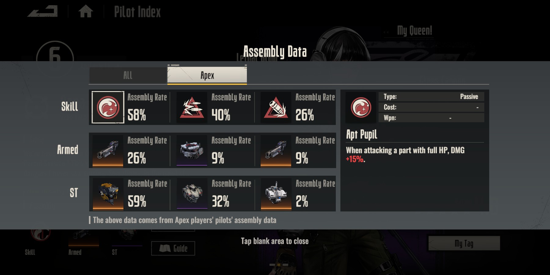 > Это гача? Да, есть баннеры для мехов и пилотов. Тенпул в меха даёт 6 случайных деталей и полноценного меха (тело, руки и ноги). Одиночные пулы строго не рекомендуются, так как не засчитываются в гарант на целого меха.
