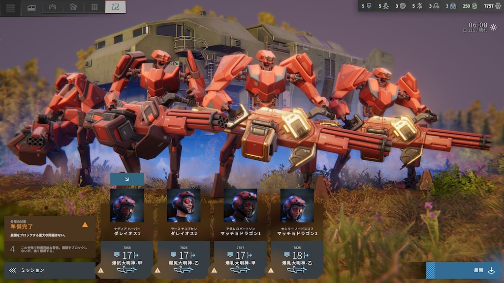 В конце 7го пермита заставили таки научиться использовать функцию переодевания челиков в чужих роботов по одной кнопке и пришлось подкачать несколько, которых давно не использовал. 12! для одной миссии, это было неожиданно, но интересно.