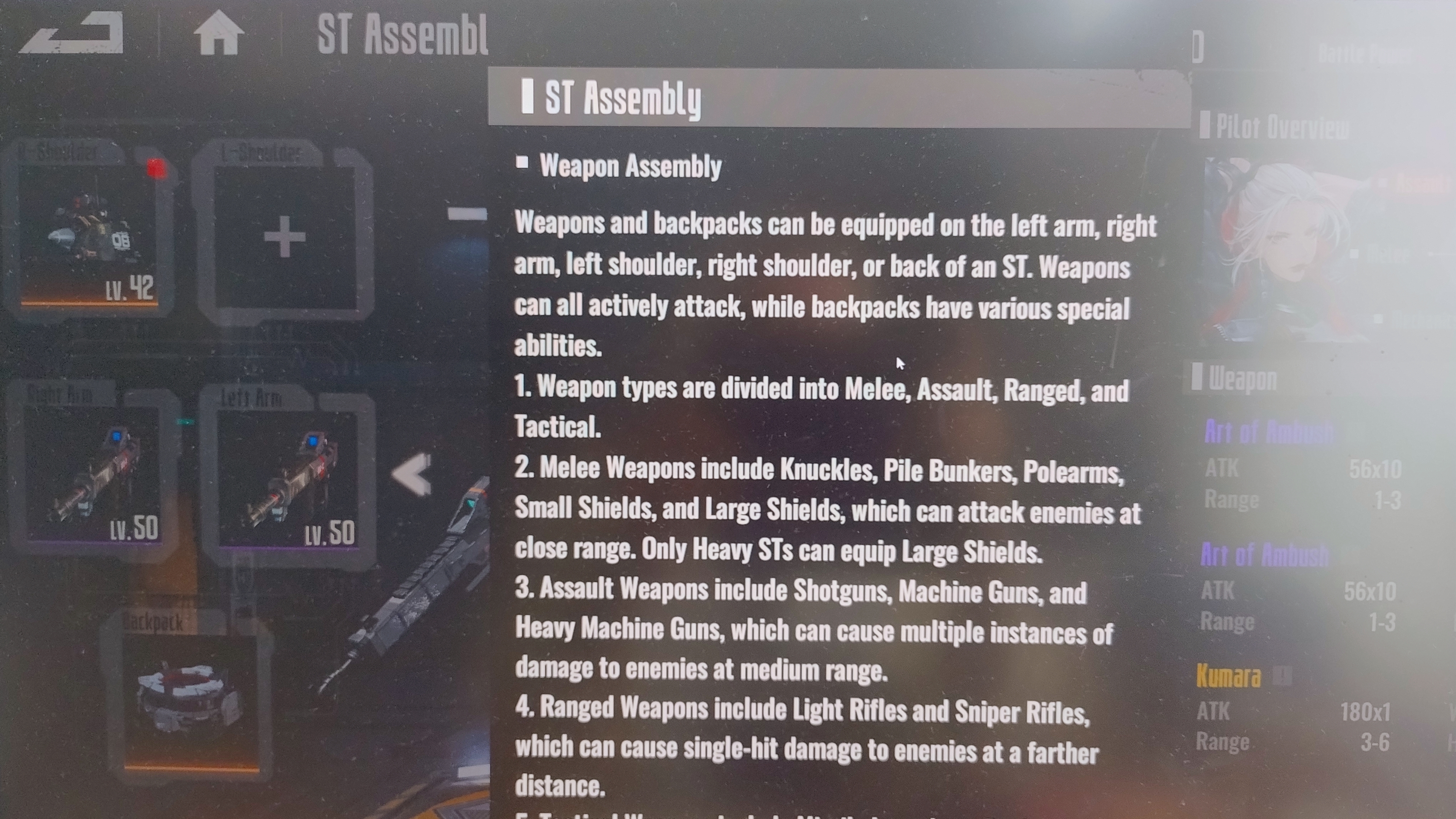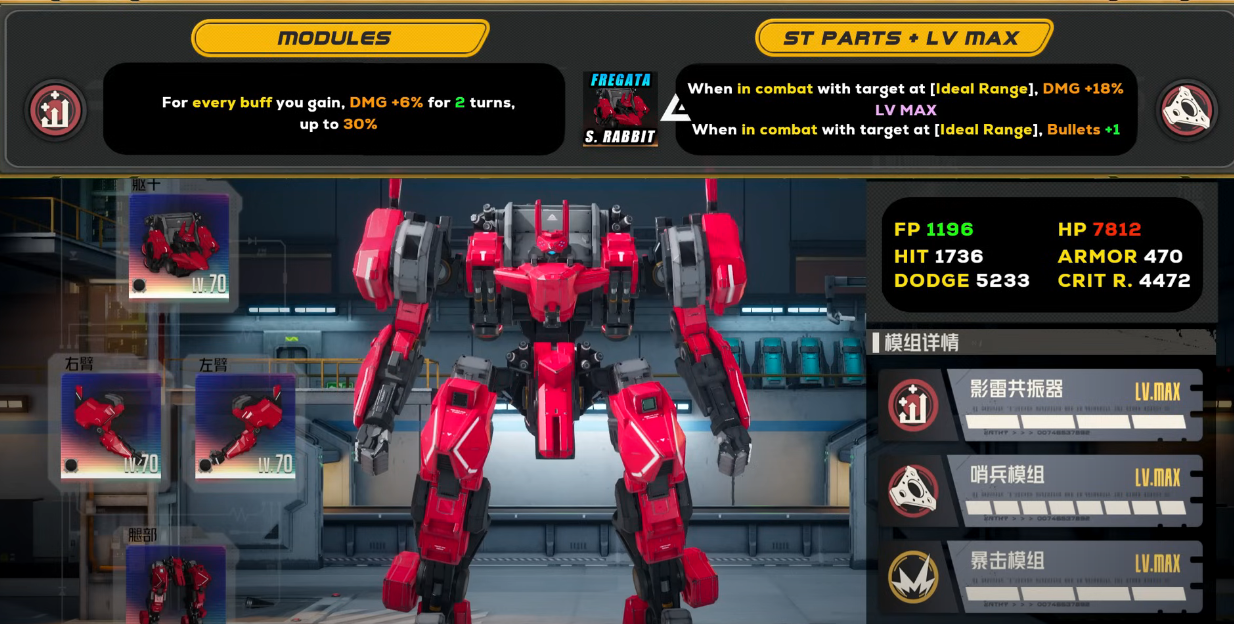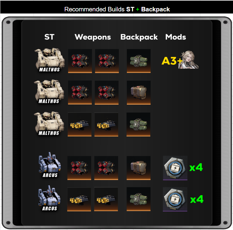 >>5389480 >Какого персонажа в какого робота пихать? Да там не оч сложно - смотришь пассивки меха у А и S только они есть, да выдаешь персонажам. Типа дают меха за задания - он для тактика: от оружия на плечах +урон и когда врагов рядом нет тоже + урон. Так и для остальных.