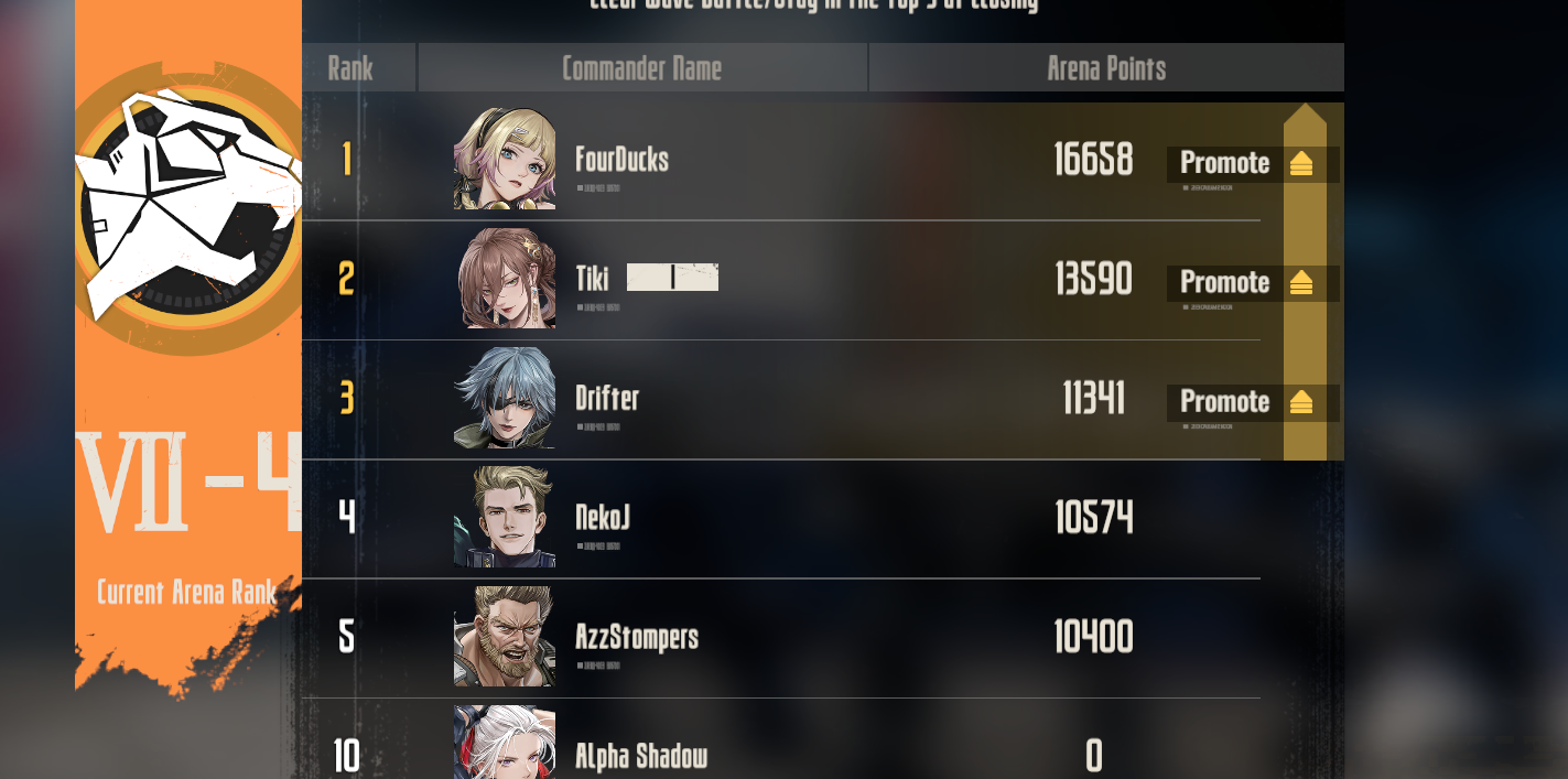 Китов всё равно не догнать, так что я не парюсь и чилю на 7-3 пермите до сих пор. По ивенту видно, что максимальные награды в них будет всё равно неразумно сложно забрать. Алсо, наконец-то дополз на арене до последней (пока?) категории. В последнем бою одну Хонг убивало 6 человек, думал, уже не уложусь по ходам. Аж себе из бп захотелось забрать, но говорят, надо ждать Аску.