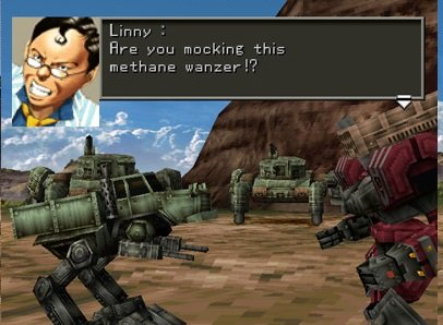 Это ещё наследие с тех времен когда игра разрабатывалась частью серии Front Mission - там всегда такие мехи были. Будем надеяться, что дальше будет лучше.