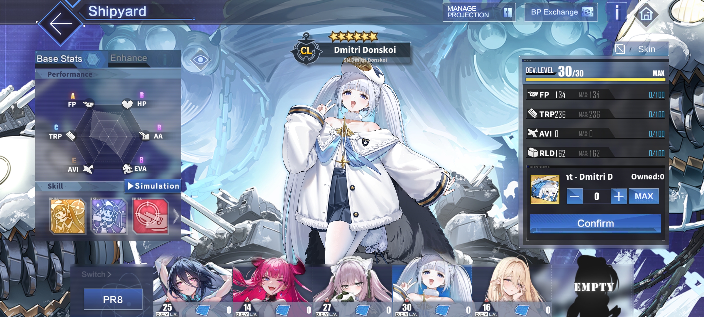 Взял 50 лвл. Дошел на Богинях до 7-1, в ивенте этом новом до 2й части, дальше почему-то не открывается, хард наверное надо проходить. Выплата какая-то тётя с самолетиками и два Ташкента, теперь у Кирова будет подружка. Хуйнюшки для ретрофита Лаффи не падают чет, три абгрейда осталось до полного, Юникорн качаю 50 лвл покачта, забыл её на флаг поставить вчера чтобы быстрее качалась. И еще такой вопрос Если 70 тян опыт скипает в бою, он на остальных распределяется или просто пропадает?