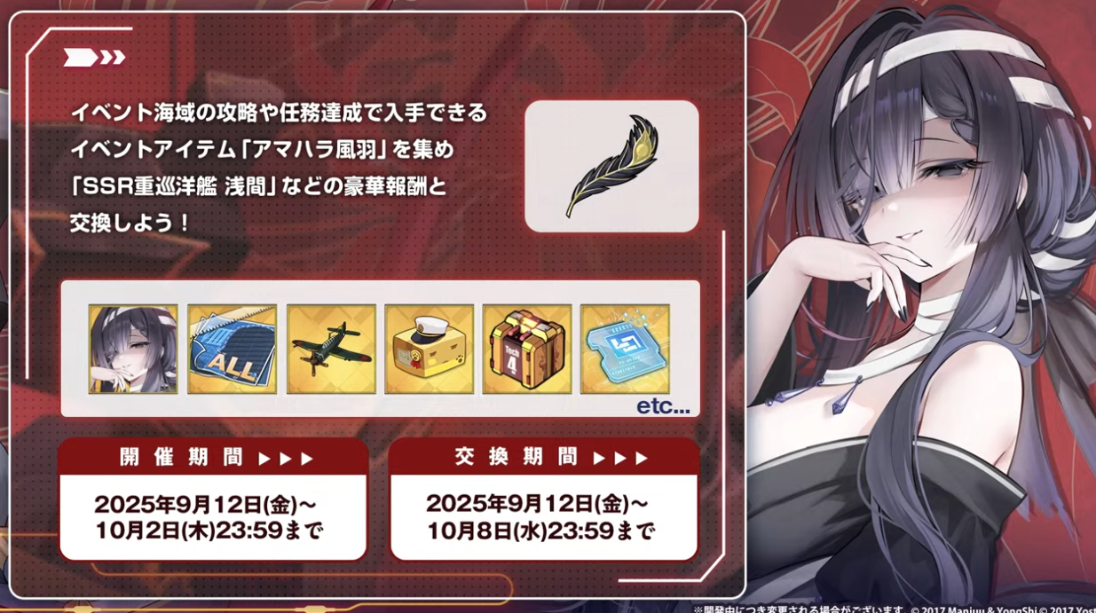 Call to Arms: Amahara, a prelude event, will be available from September 4th! Earn extra experience by sortieing with Helena, Zuikaku, Akagi, Unzen, and Houshou META to prepare for the upcoming major event.