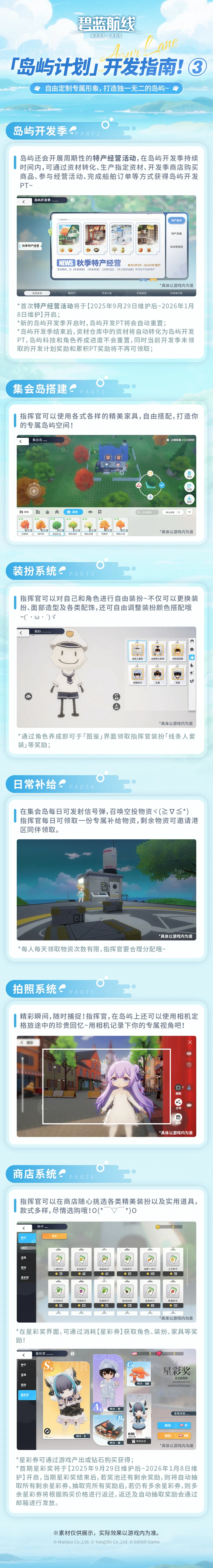 ※Use the Island Authority Permits to give characters the credentials to visit the island freely. ※Unlock more stories, features, and rewards by leveling characters, completing Island Requests, researching, and exploring the island. 【Season】 ※During a season, you can earn Island Development Points (IDP) by doing things such as exchanging resources, producing specific resources, completing transport jobs, participating in seasonal events, and making purchases in the shop. ※Season I will be available between 9/29/2025 – 1/7/2026, 11:59 P.M. (UTC-7). 【Stellar Prize Draw】 ※You can spend Stellar Tickets on the Stellar Prize Draw to draw various prizes, ranging in grade from S (highest) to C (lowest). ※Stellar Tickets can be earned through playing Island Planner, or purchased using Gems. ※The first edition of Stellar Prize Draw will be available between 9/29/2025 – 1/7/2026, 11:59 P.M. (UTC-7). 【Login Bonus】 ※Log in to get great rewards including Island Development Gem, Manufacturing Textbook T2, and Cognitive Chips.
