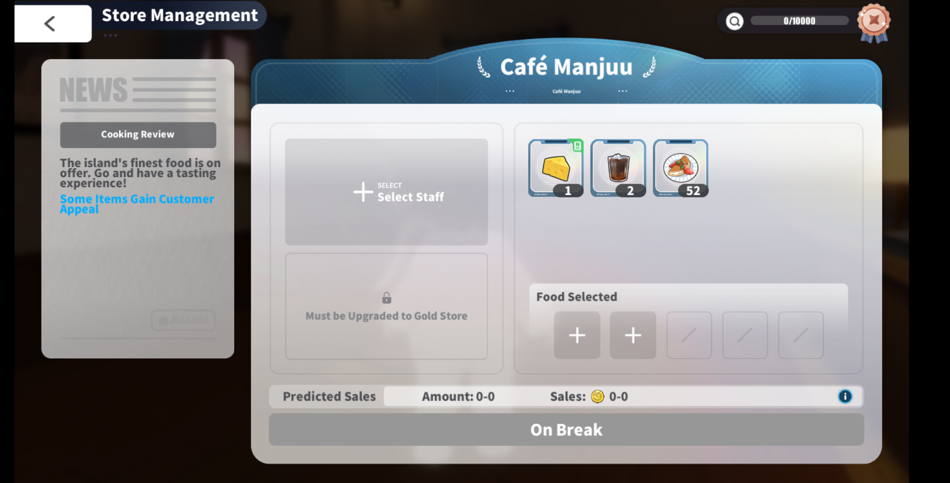 Во-первых, у меня всю ночь работало кафе, потом закрылось с 0 прибыли типа никто нихуя не купил мои омлеты и сыр, хотя прибыль потенциальную показывали огромную. Где деньги-то брать? И я не смог заново запустить кафе, пишет что оно блять на перерыве уже весь день