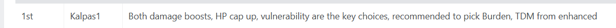 >>5481315 >>5483639 >физ вальки это физа, а все остальные элем вжушкну логично да, но хочу уточнить.. Это. В элизиуме айс/фаер/лайтнинг бонусы бывают только в индивидуальных (Эго) печатях. У всех остальных флеймчейзеров либо физ либо элем, куда входит и огонь и мороз и молния. Физ брич работает только на физ урон и наоборот, брать его для элем валки бессмыслено. Правило Diminishing returns тут работает, поэтому лучше брать по возможности разные баффы (тотал, элем/физ, брич, рейндж/мили, скилл/ульт/нормал и т.д.) а не набивать +1000% элем урона.