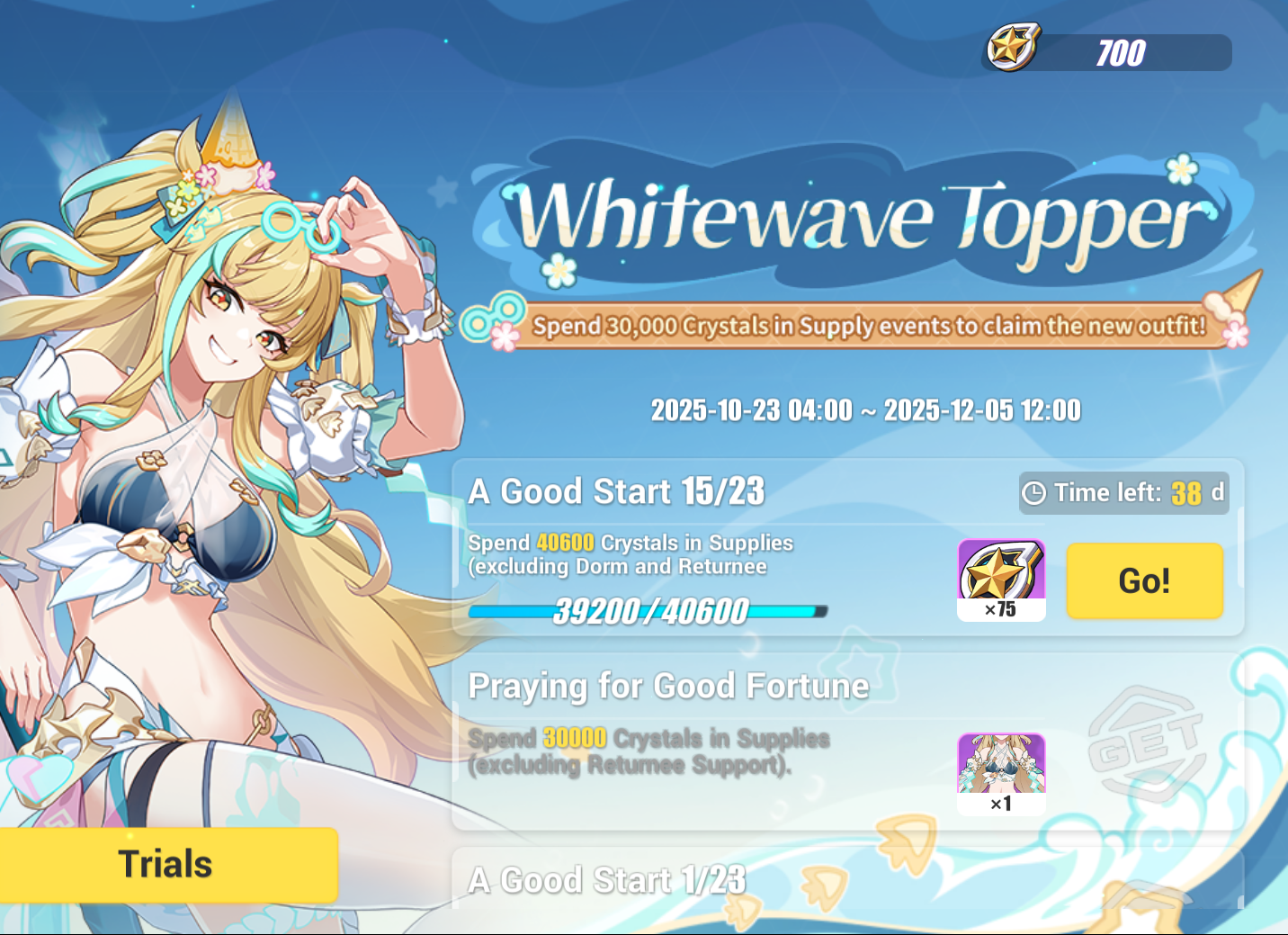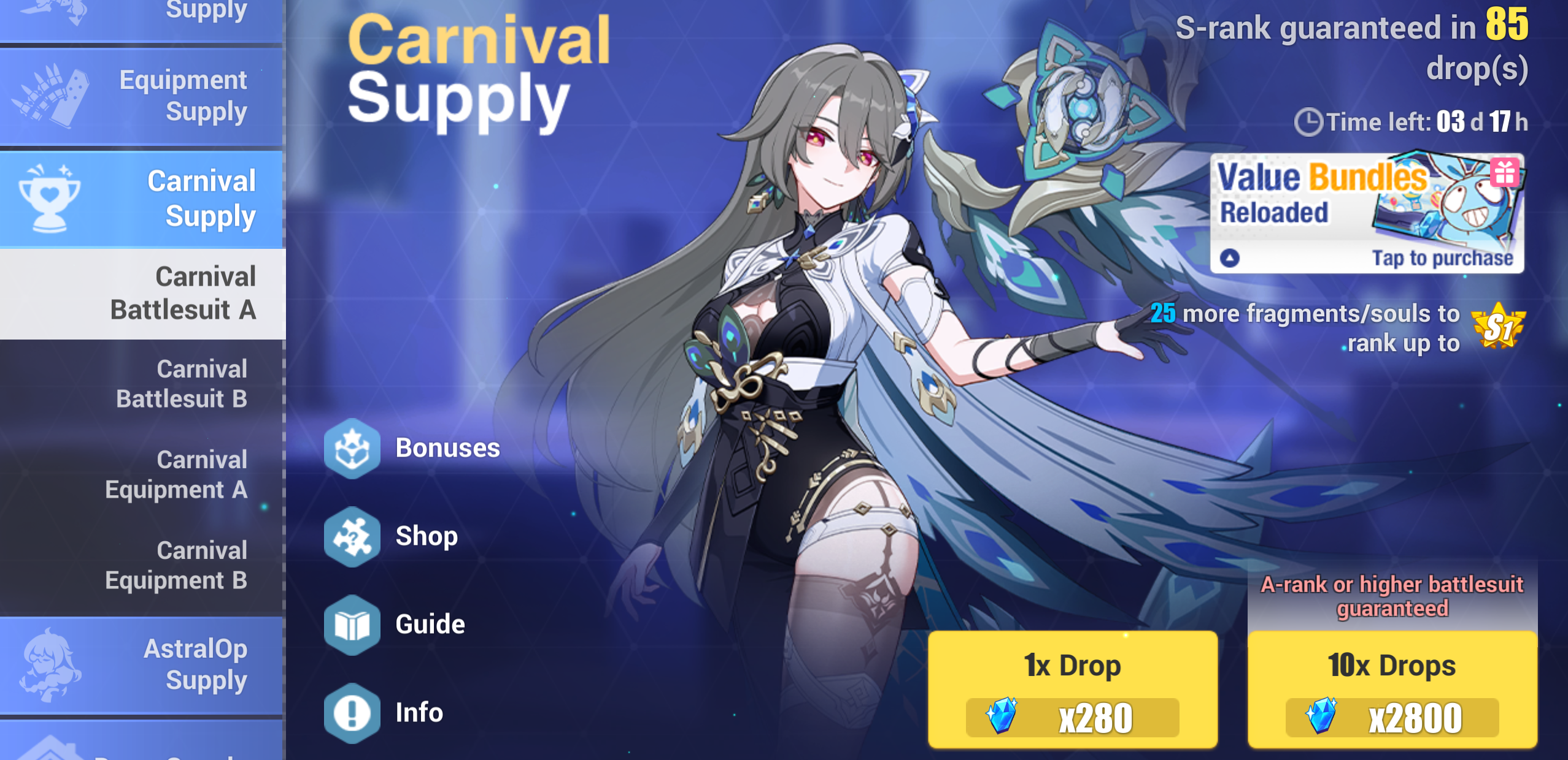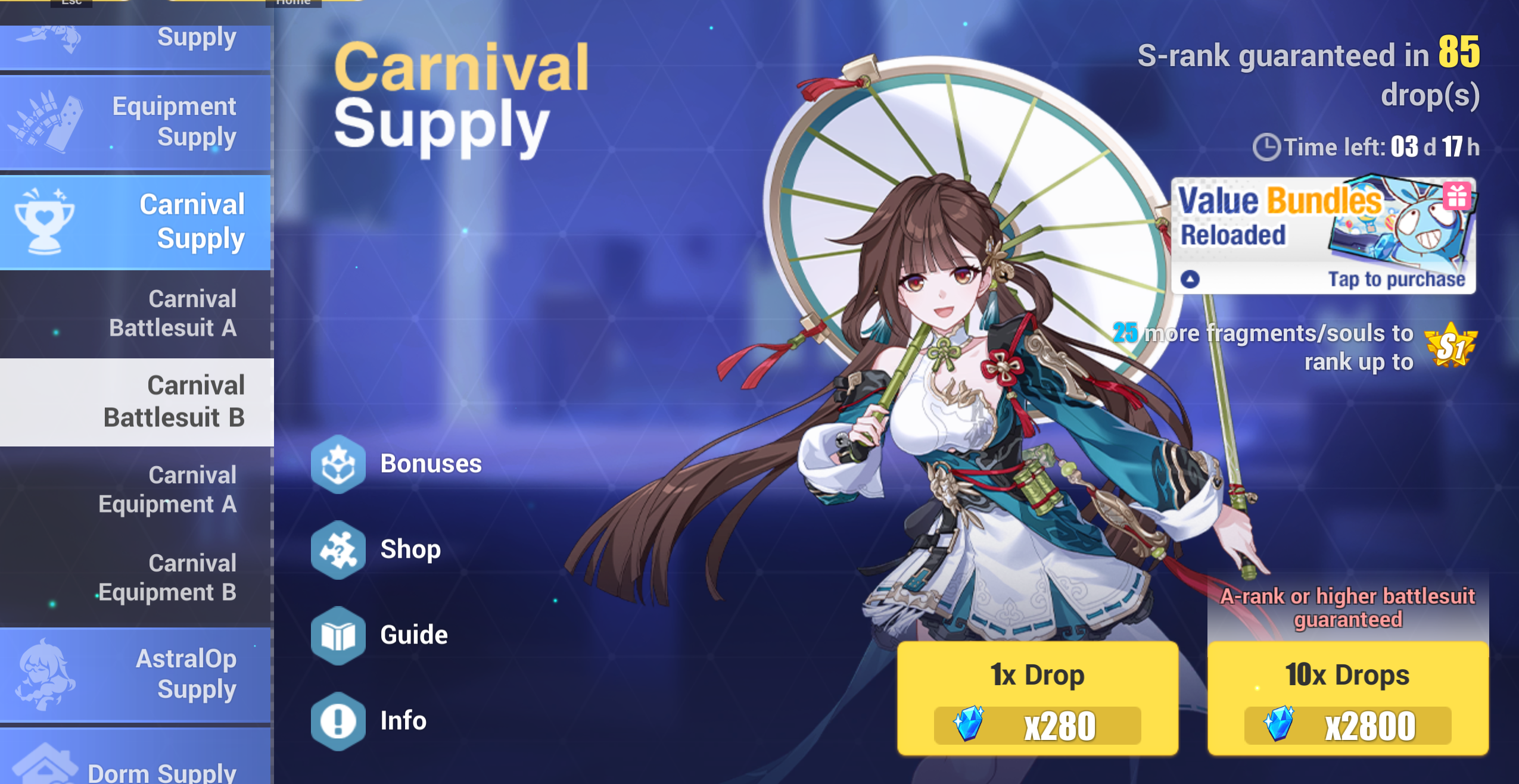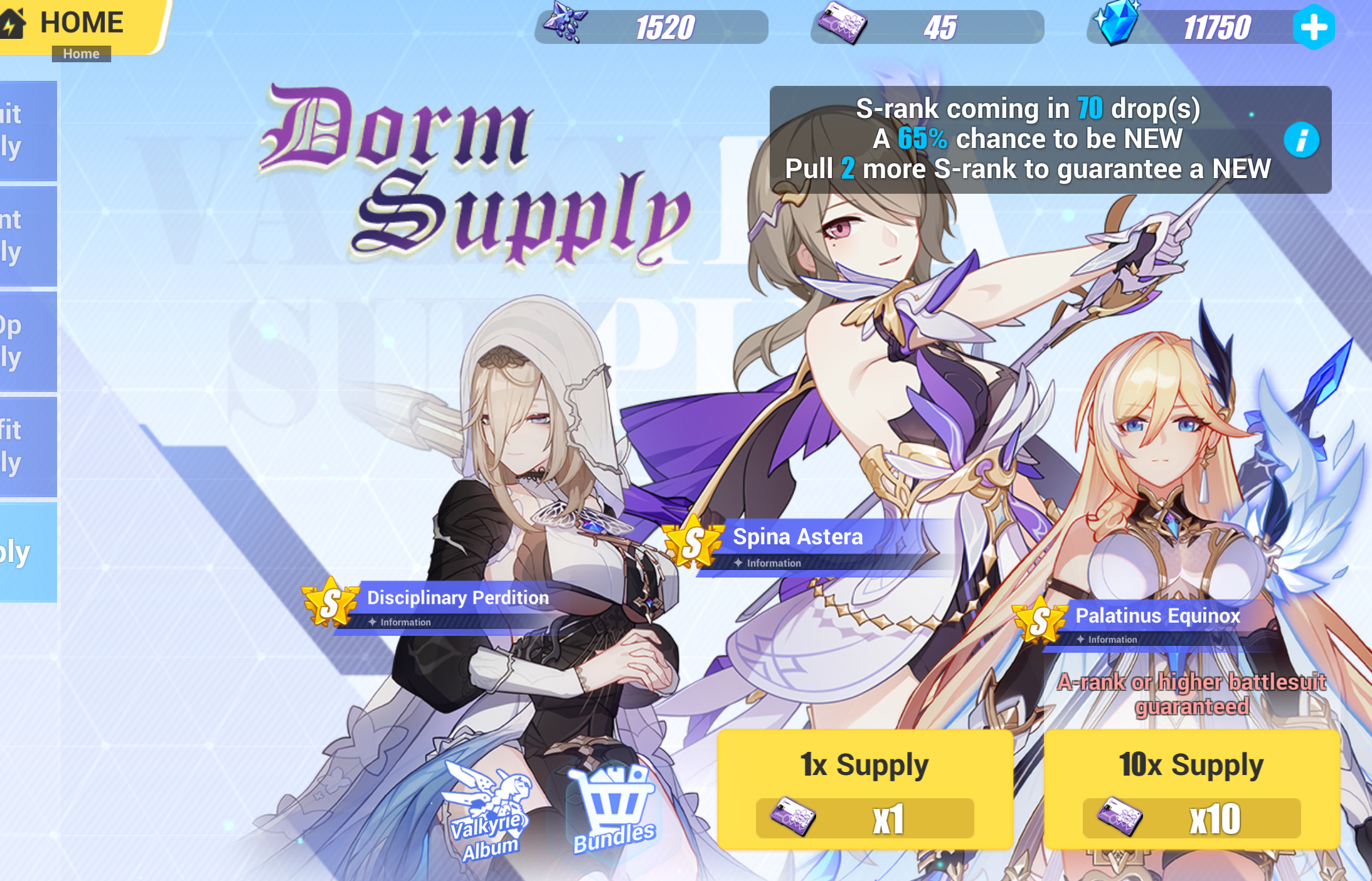 Итак, полный ньюфаг в тхреаде, играю от силы неделю, гачу не крутил, не считая одного пулла в Dorm Supply за билетик (скипнул момент, когда предлагали за кристаллы сделать - надеюсь не сломал игру), одного пулла в Starter Supply по заданию и 10 бесплатных круток в Элизию. Уже накоплено непосильным трудом 10+к кристаллов, это как я понимаю 35 круток. Донатить сюда не собираюсь, как и играть больше часа в день - у меня так-то еще геншин есть. Внимание, вопрос: стоит ли тянуть эту Элизию сейчас и уже начинать собирать ей команду, либо лучше копить до следующего патча, чтоб уже наверняка выкрутить новую валькирию? Я в курсе, что нужно обязательно еще оружие, а это еще +50 круток, но хз насколько быстро тут зарабатываются кристаллы. Вопрос №2: в ивентовом баннере гарант переносится на следующий или нет? Спасибо заранее.