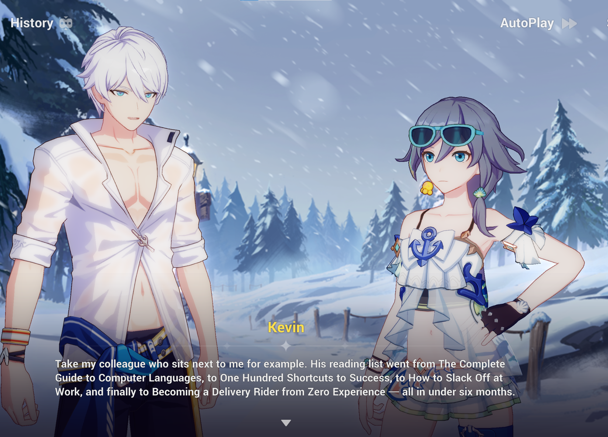 >>5801243 Мне пока и сюжет влом проходить, чисто на дейлики хватает. Остановился на третьей главе. По квесту новичка надо уже проходить первую главу второй части, сенсей советует фармить астерит в Пост-Хонкайной Одиссее, а я там подыхаю на первом же задании )