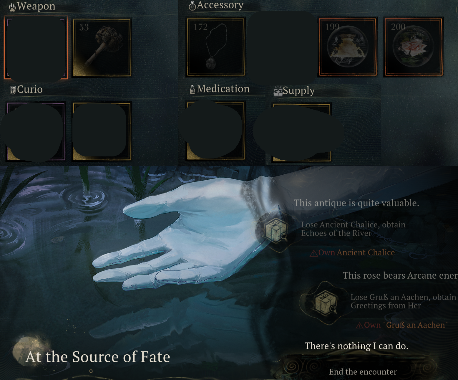 Поставил себе цель открыть хотя бы все артефакты в роуглайке. Ивенты бы тоже, но это гиперрандом. Время от времени перепрохожу, но постоянных наград осталось на пару раз. Короче вообще не представляю где взять вот эти последние два артефакта (медальон и гранаты на палочке), наверное в каком-то суперредком ивенте. В последнем дополнении написали что добавили Counteractive-артефакты, и... их нет. Нигде. Один нашел только, сам падает.
