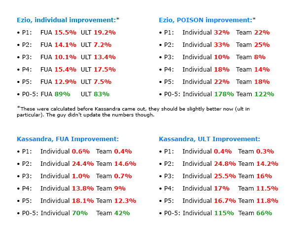 Вот насчёт ФуА бонусов для ядо Эцио я наверняка сказать не смогу, кто-нибудь поправьте если знаете. Вроде какой-то скейлинг есть, тем более что эцио под контратаками всё ещё ФуА, но скейлится ли генезис, являющийся основой дпса - тут сказать не могу. Фтт хороший хиллер и клинсер тем более опять же под ФуА, но Сосеба так-то тоже ничего.