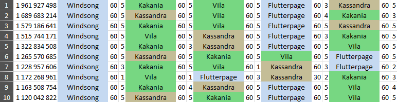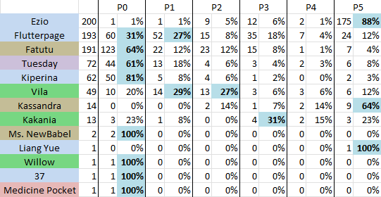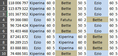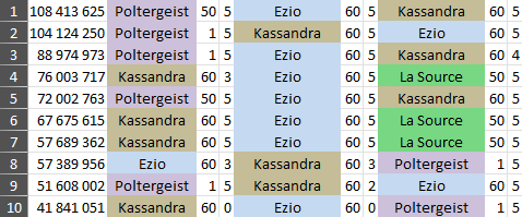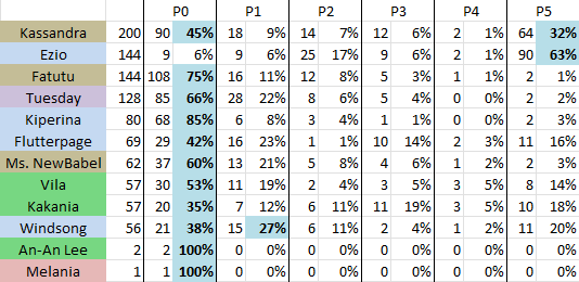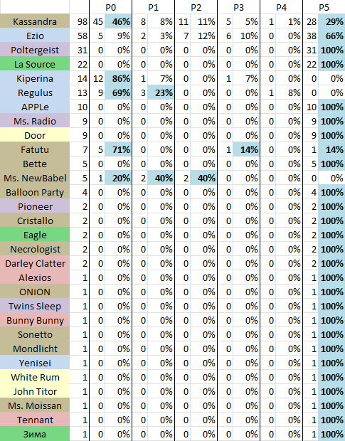 Хуже только Эцио. Он влезает в три пачки, но при этом надо его переключать. Хорошо хотя бы в целом понятно что ему ставить. У Кассандры не очень понятно, но я вроде записал. Потраить реверис что ли.
