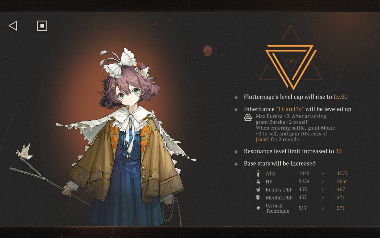 When entering battle, Beryl accumulates points of Ember in [Spotlight Lantern]. ([Spotlight Lantern] is visually similar to Bloodtithe’s Blood Chalice.) When enemies are inflicted with [Burn] or [Flare], the [Spotlight Lantern] accumulates some Ember points. [Flare] is a new debuff that behaves similarly to [Burn]. It decreases enemies’ Healing Taken, and deals Genesis DMG at the end of each turn. At the start of each turn, all allies’ Critical Rate increases proportionally to the amount of Ember points. [Flare], [Burn], and Ember all lose 50% of their stacks at the end of each turn.