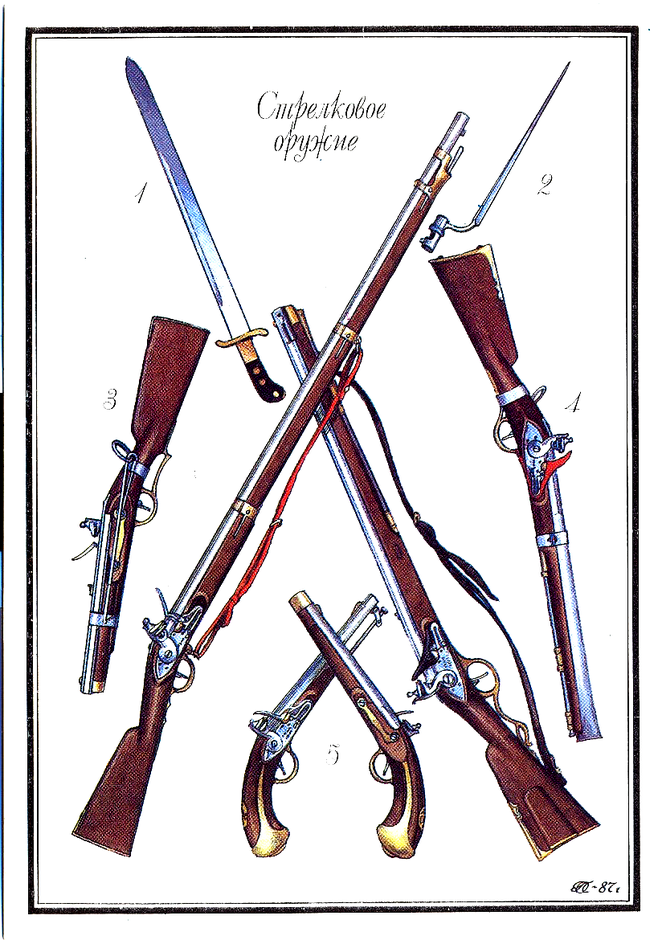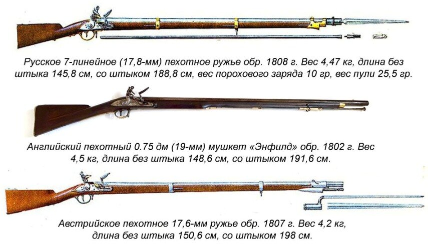 Так что было много всего интересного. Во многих странах был лютый зоопарк. Только из новго в российской армии: 1. Пехотное ружье образца 1808 года 2. Егерский штуцер образца 1805 года 3. Кавалерийский штуцер образца 1803 года