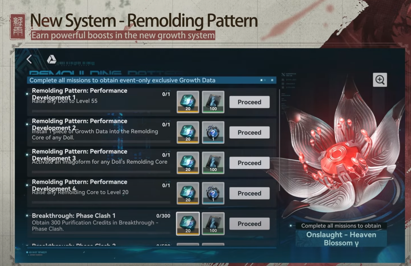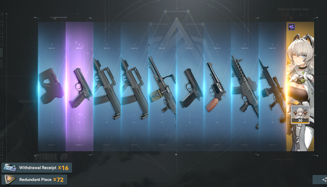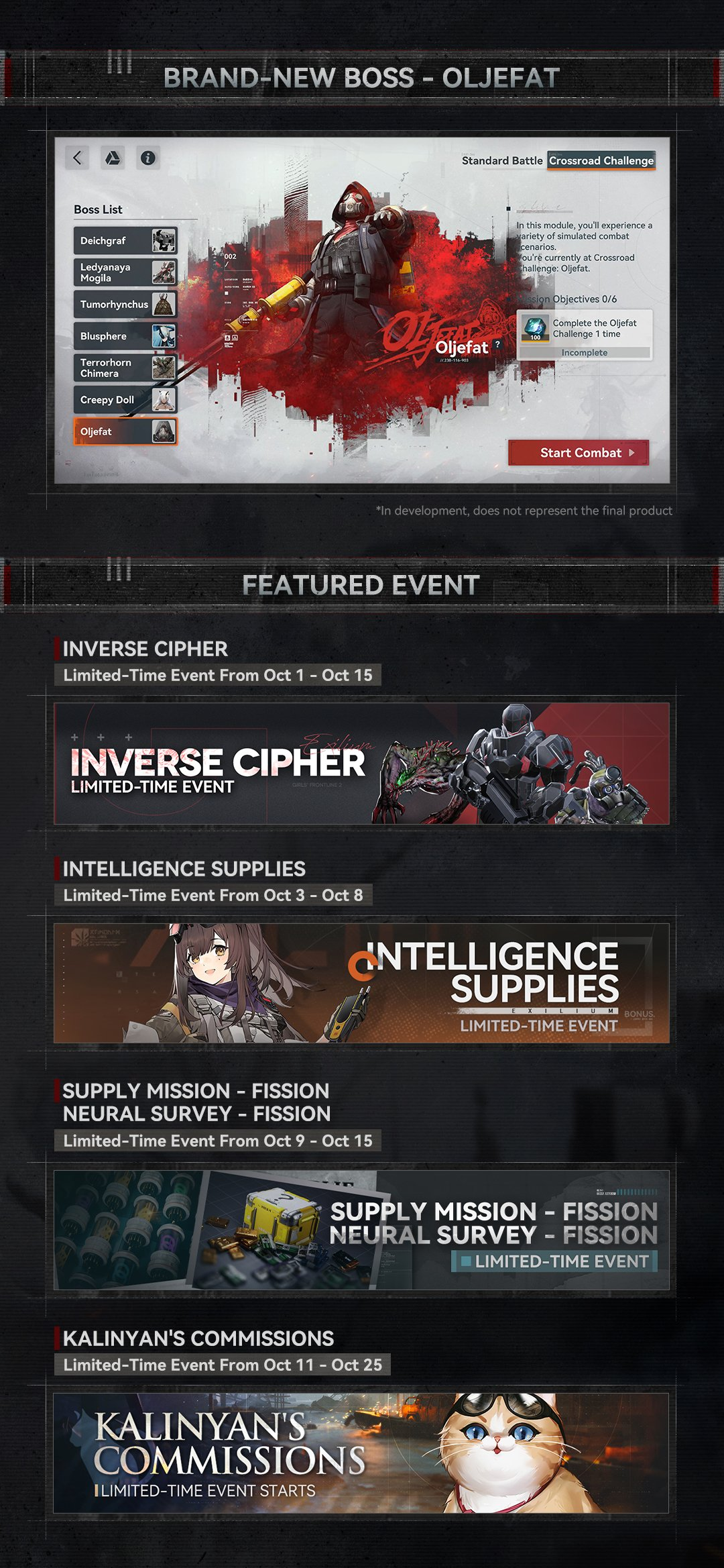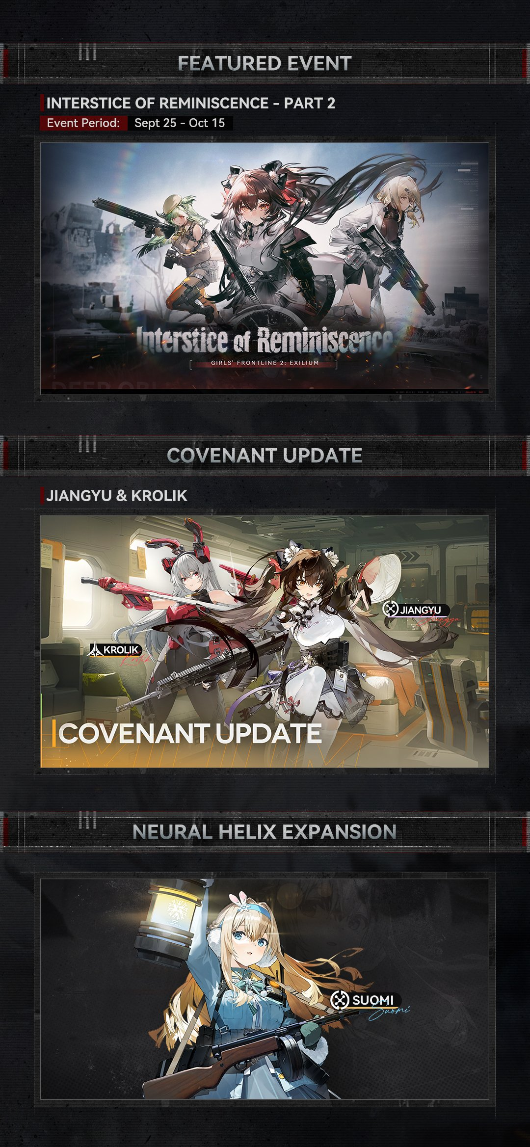баннеры: - Хелен (DP-12) Фризбулварк, обладающая множеством навыков поддержки в своем снаряжении -Фаэтуса (оригинал GFL2) Коррозия - персонаж ближнего боя, о ее снаряжении мы узнаем позже. Селектор баннер с изображением Душеваной, Левы, Мечты и жопкиты и их оружия на баннере.