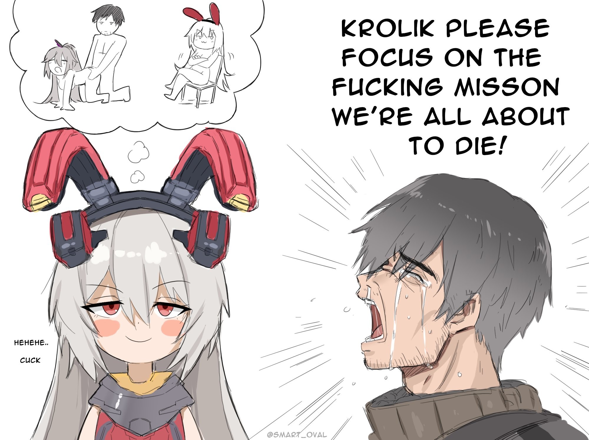 Я вот читаю сайдстори мажора в ГФЛ1. Ну, ту, которая про спецназовцев Картера, которые в Москве кипеш наводили, пока Командир во Франкфурте отдувался Кстати, передаю пламенный привет адепту "умерших во Франкфурте": большинство девчонок просто из розетки выдернули, а даже и погибшие, в большинстве своём, свои ядра сохранили, кудасай, крч.. Вот сейчас седьмая часть, они получили пизды и тикают з хутору в Жёлтую Зону.