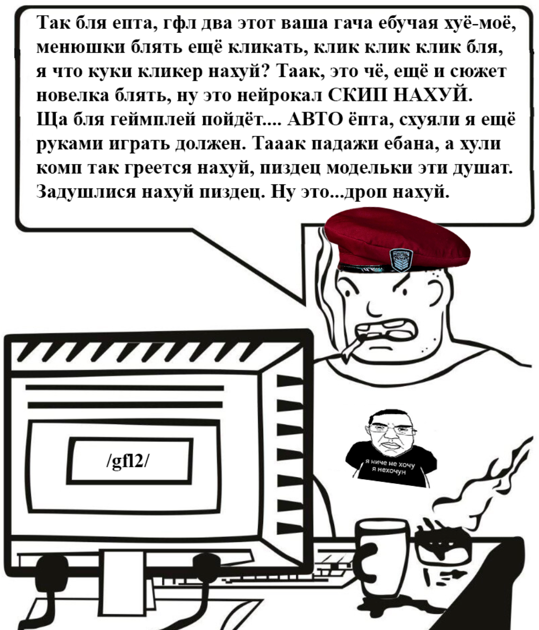 Все это в МЕДЛЕННОМ интерфейсе и в разных меню разбросанных по всей игре. Чтобы увидеть анимацию как ты получаешь свою бедную тысячу золота нужно потратить секунды три, неважно как быстро ты кликаешь. Моя наибольшая претензия это сам UI гфл2. Они вот додумались ускорить интерфейс ПВП, но хуй забили на все остальное. У всего длинные анимации переходов через менюшками, медленные анимации окончания боя, все это просто выматывает. Не скажу что уж прям душит, но 99% о чем я думаю заходя в ГФЛ2 это "сука ну давай прокликивайся/прогружайся/исчезай быстрее.