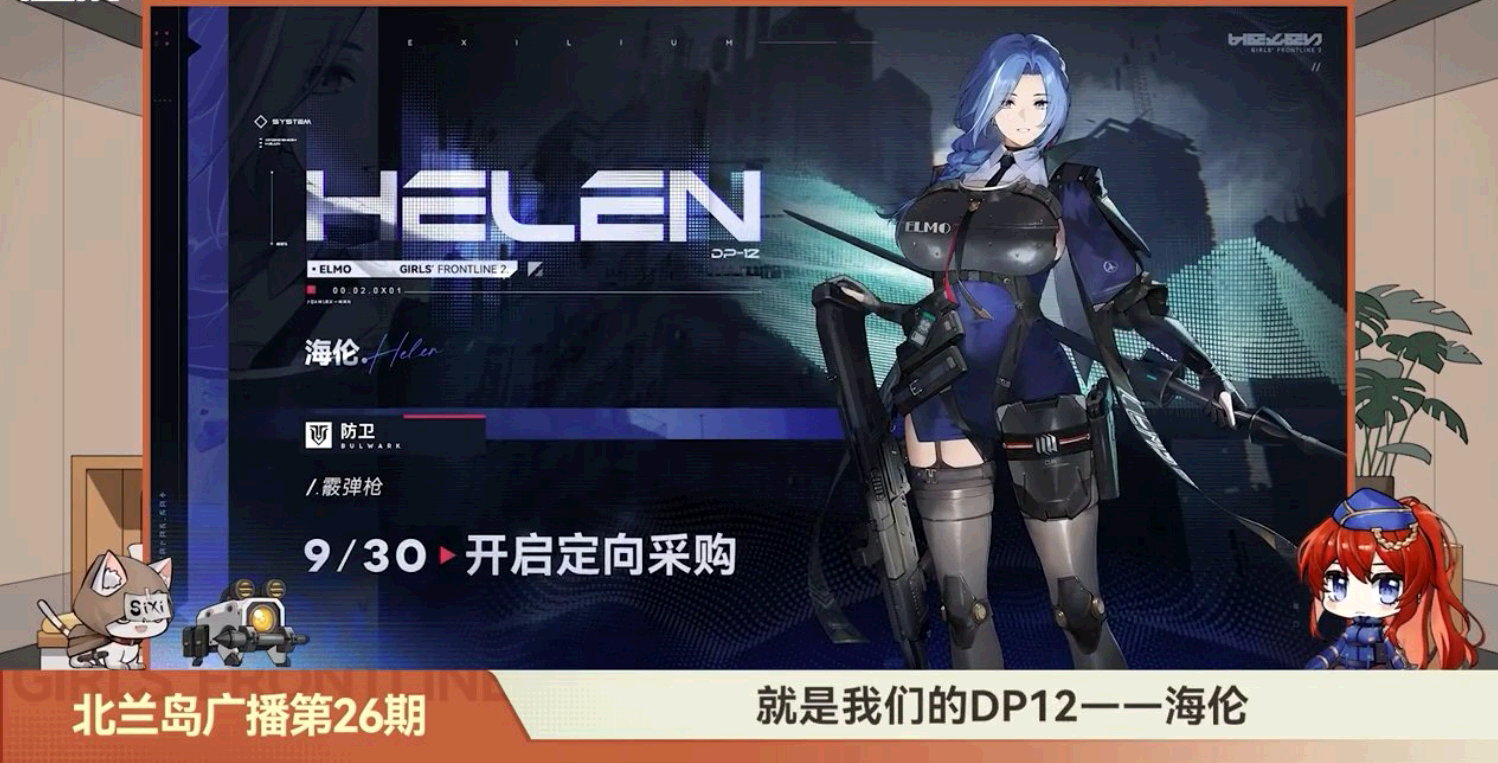 Знакомство с Хелен: Элемент замораживания, класс защитников, использует дробовик. Основная атака наносит урон от замораживания. Пассивное: увеличивает максимальное количество здоровья и защиту, снимает дебаффы с себя и восстанавливает определенное количество здоровья. Чем больше единиц урона получает Хелен, тем больше усилений она себе дает. Высший: Выбирает 1 союзника и увеличивает его атаку и защиту, а также уменьшает время восстановления у союзников, обладающих замораживающими элементами. После использования этого умения Хелен получает [дополнительную команду]. Умение 2: Дает союзникам щит, генерирует замораживающие плитки и снимает дебаффы с союзников. После использования этого умения Хелен может провести дополнительную атаку. Умение 1: Преобразует урон, наносимый союзниками, в [Дополнительную команду] (?) Оружие: Увеличивает защиту пользователя и урон, наносимый основными атаками.