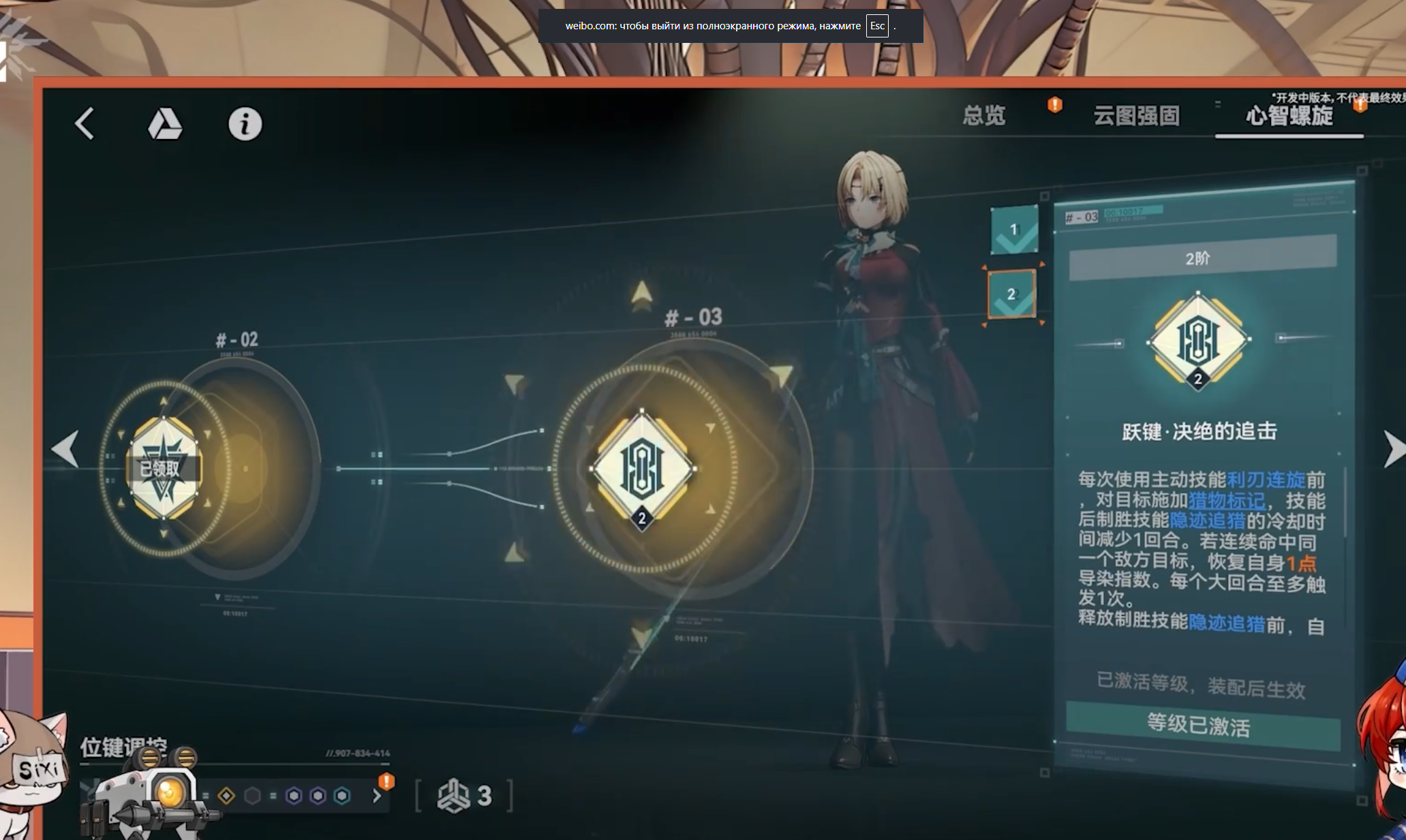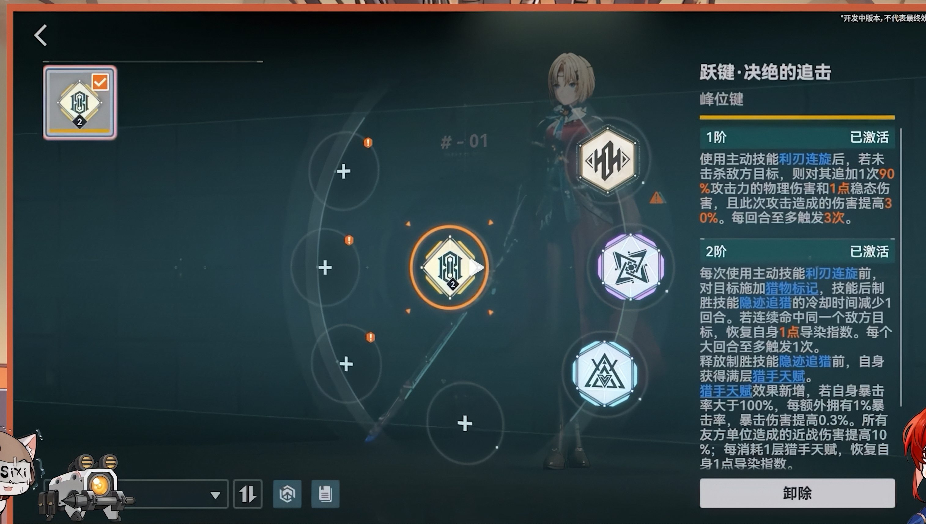 Новая система - Neural Expansion Key MOD 2 По сути, это обновление для Neural Expansion Key. Ульрид получит первый ключ от мода. Наносит [Метку жертвы] перед каждым использованием активного навыка [Вихрь клинка]. После использования указанного навыка время восстановления основного навыка [Скрытая погоня] уменьшается на 1 ход. Если Ульрид постоянно попадает в одну и ту же цель, она получает 1 очко индекса мастерства. Этот эффект может быть активирован только один раз за раунд. Прежде чем использовать высший навык [Скрытое преследование], Ульрид получает максимальное количество очков [Таланта охотника]. Эффект [Таланта охотника] усилен: если критический уровень Ульрид превышает 100%, то за каждые 1% превышения критического уровня ее критический урон увеличивается на 0,3%. Увеличивает урон, наносимый всеми союзными юнитами, которые наносят урон в ближнем бою, на 10%. За каждый потраченный стек [Таланта охотника] Ульрид получает 1 единицу индекса мастерства. Дайян находится в очереди на этот мод нейронного расширения.