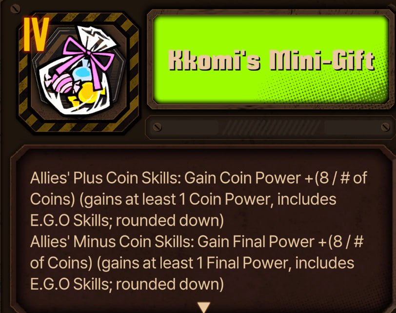 >>5562958 Произошло недопонимание. Эго гифты конечно можно за старлайт подобрать, это всё правильно, но я имел ввиду, что при солохождении цепляешь все прокачанные ЭГО (waw) на инвалида, по ходу прохождения добираешь эго (гифты) на генерацию грехов и гифты на применение эго типа fragment of fire и с 11 по 13 этаж не вылезаешь из коррозии металла с довольным ебалом.