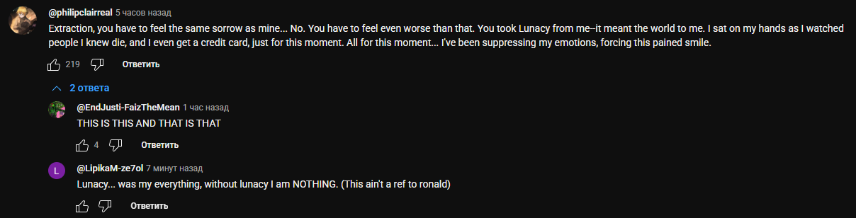 Кстати, если бы кал лаб был двухсторонним, то каких врагов мы бы отправили воевать с родосом, и какой механикой поделились бы с дохтами? Красные монеты из-за другой боевой системы не подойдут. Блид, руптура, бурн и прочие статусы с дополнительным уроном это неинтересно, его все равно прохилят. По идее можно переизобрести синкинг путем отнимания сп на скиллах, но это уже есть в элементальном уроне от некроза. Или переизобрести тремор, станы в игре тоже есть. Тут я еще хотел спросить, каких синнеров и с какими айдишками можно отправить работать на родос, но понял, что получится лютая анлорная хуйня, ведь без Данте бомжи могут только эго прожать и нафидить - респауна нет, айдишек нет, крутых эго нет, коррозии тоже нет, ведь стоковые эго её не имеют. Без этих приколов бомжи по статам совпадают с обычными людьми, на поле боя свагу не демонстрируют. Получается, Джихуй умный? Он не захотел обосраться с каллабом еще сильнее, чем уже сделал
