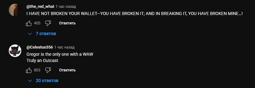 Люшников вон 7 человек уже. А вы давно вообще думали "Хммм, может мне поиграть ЛюГрегором или ЛюМерсо"? То то же