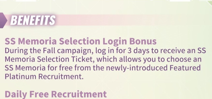 >>5559112 Ну я сейчас глазами пробежался по их августовскому анонсу и встретил четкое упоминание только одного селектора, и оно явно относится к завтрашнему билету. Они там много наобещали, но в довольно обтекаемой форме и с растяжкой на сентябрь-октябрь. Так что посмотрим, добавят ли в октябре всякие куски SS к еженедельным наградам и начнут ли давать "ранее выпущенные мемории в качестве логин-бонусов".