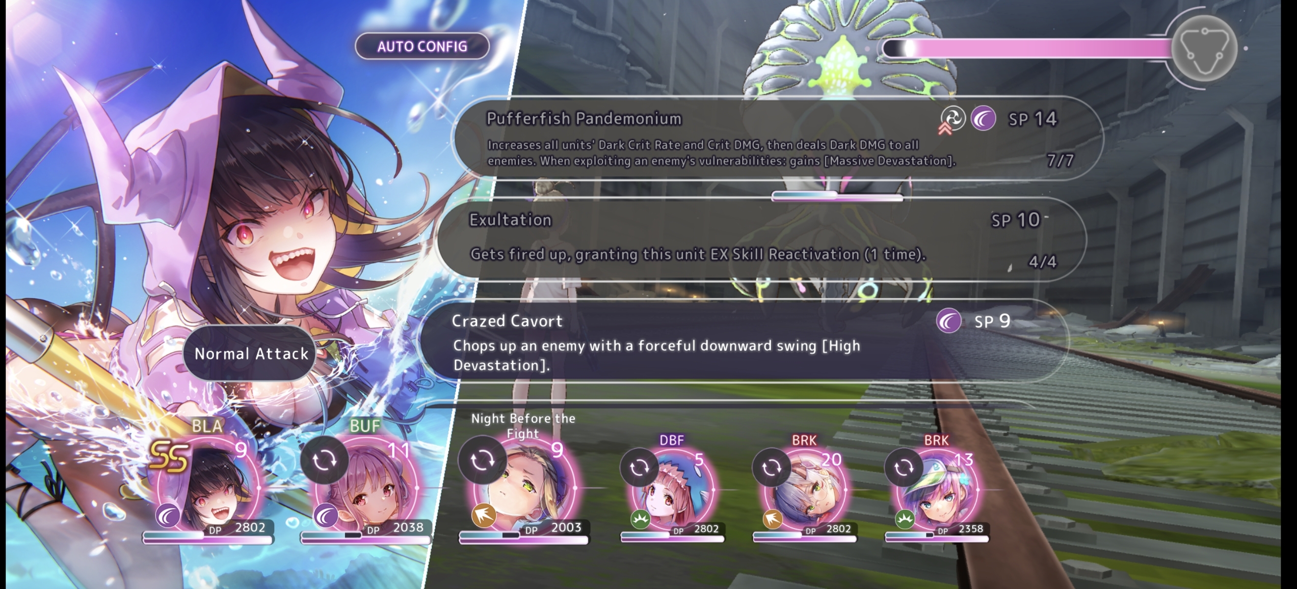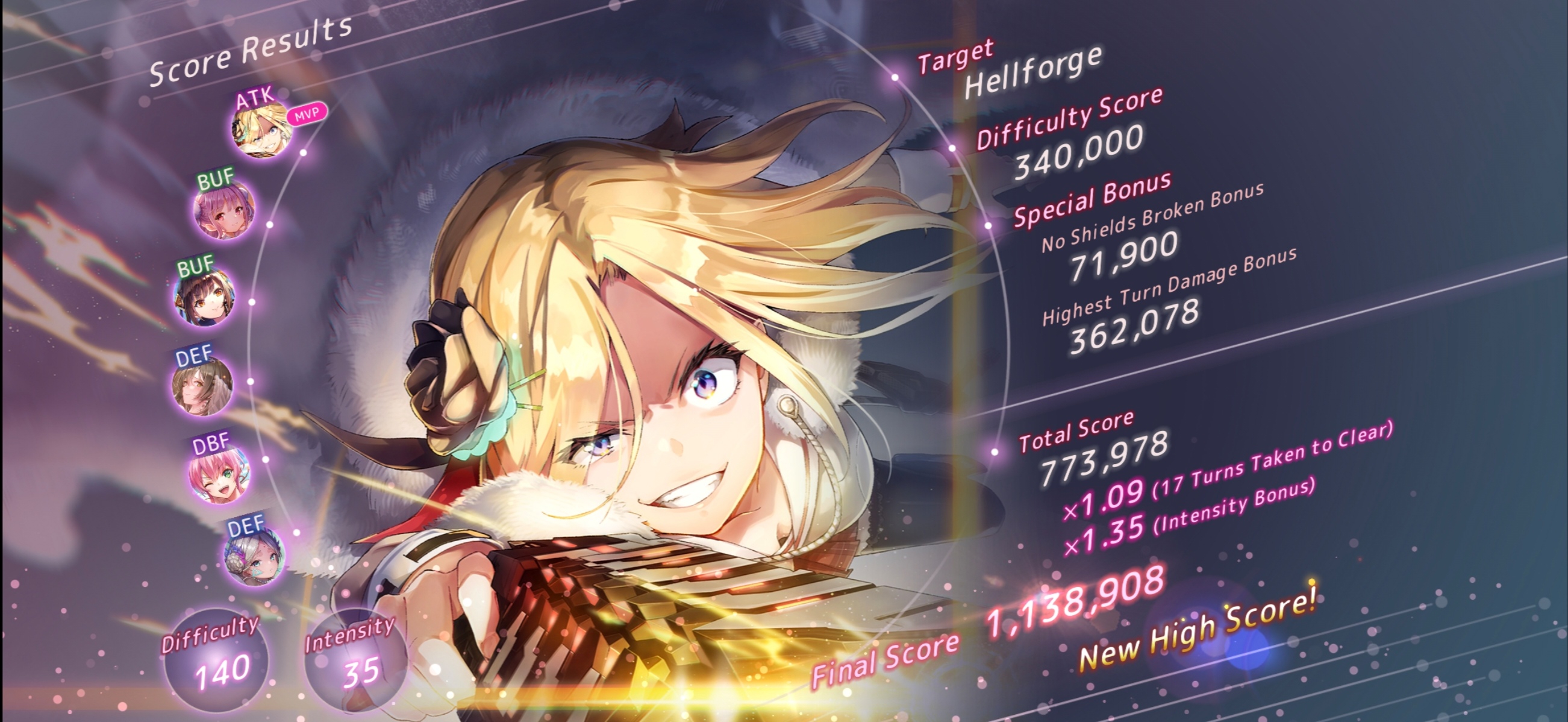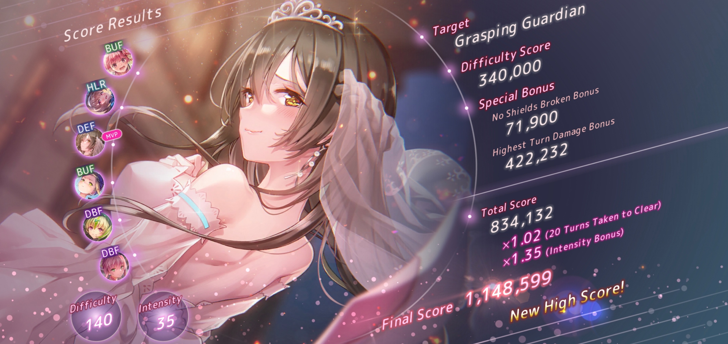 Я думал у меня кукуха поедет это ретраить. Я до конца не верил что лб0 мемория под идеальными саппортами не сможет лям взять. Оказалось ползунок сложности вверх иногда уменьшает нужный скор. Короче так как ни у кого Минори нету заспойлерю - этот босс стоит афк когда у тебя негативный овердрайв, с Минори этот босс 10 ходов афк стоял. Но весь хардкор это победить босса с +75% хп без овердрайва, на Куре. Спасло то что у поляны Исузу появился порядок применения как у бафов и что если ее поставить перед Минори, которой нажать залив сп в Исузу и получается что я и поляну кастую за 12, и на следующий ход жмякаю сс1 ульт за 14 сп, в лимите в 20 сп без овердрайва. Итого все дебафы получается наложить и Тамой бафнуть +20 статов бедной бездамажной Куре.