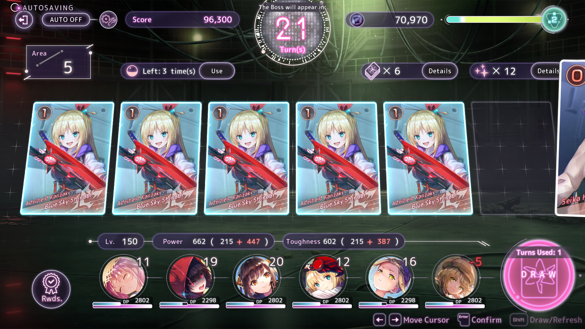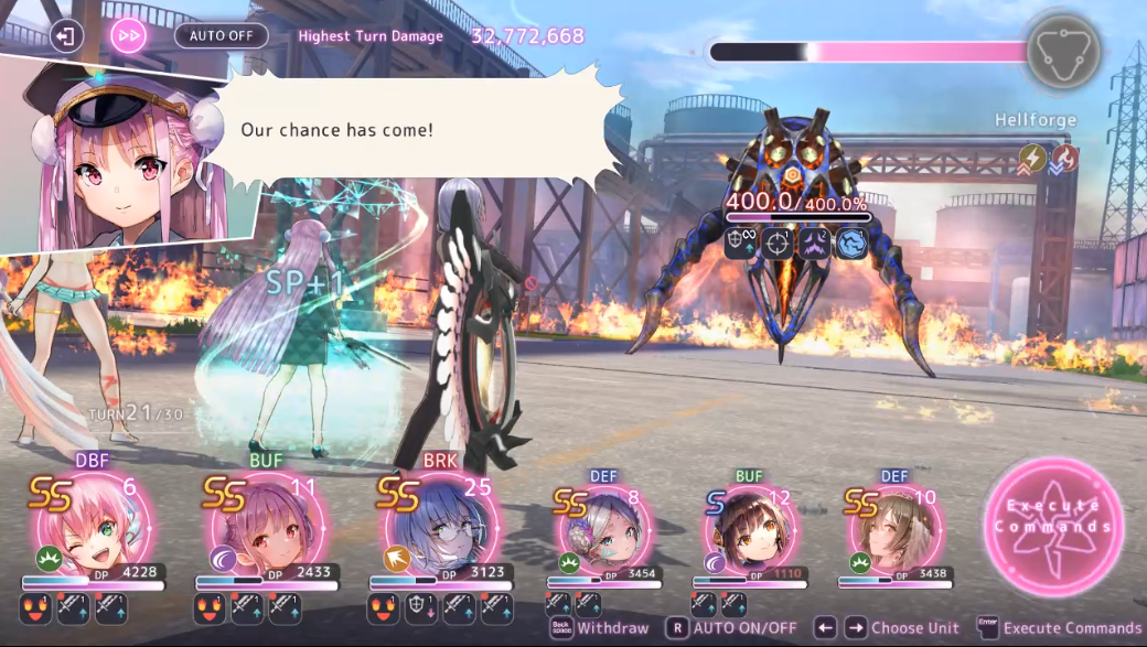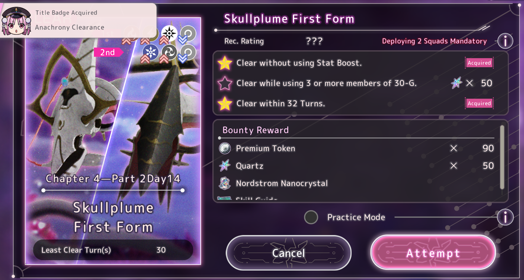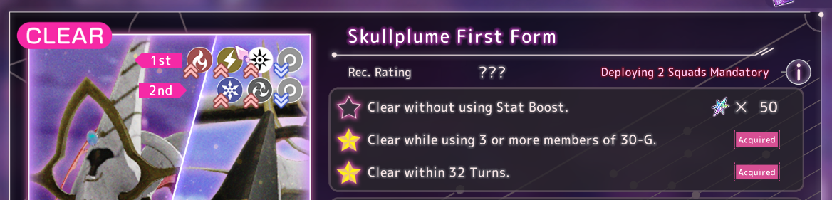 Я думал у меня кукуха поедет это ретраить. Я до конца не верил что лб0 мемория под идеальными саппортами не сможет лям взять. Оказалось ползунок сложности вверх иногда уменьшает нужный скор. Короче так как ни у кого Минори нету заспойлерю - этот босс стоит афк когда у тебя негативный овердрайв, с Минори этот босс 10 ходов афк стоял. Но весь хардкор это победить босса с +75% хп без овердрайва, на Куре. Спасло то что у поляны Исузу появился порядок применения как у бафов и что если ее поставить перед Минори, которой нажать залив сп в Исузу и получается что я и поляну кастую за 12, и на следующий ход жмякаю сс1 ульт за 14 сп, в лимите в 20 сп без овердрайва. Итого все дебафы получается наложить и Тамой бафнуть +20 статов бедной бездамажной Куре.