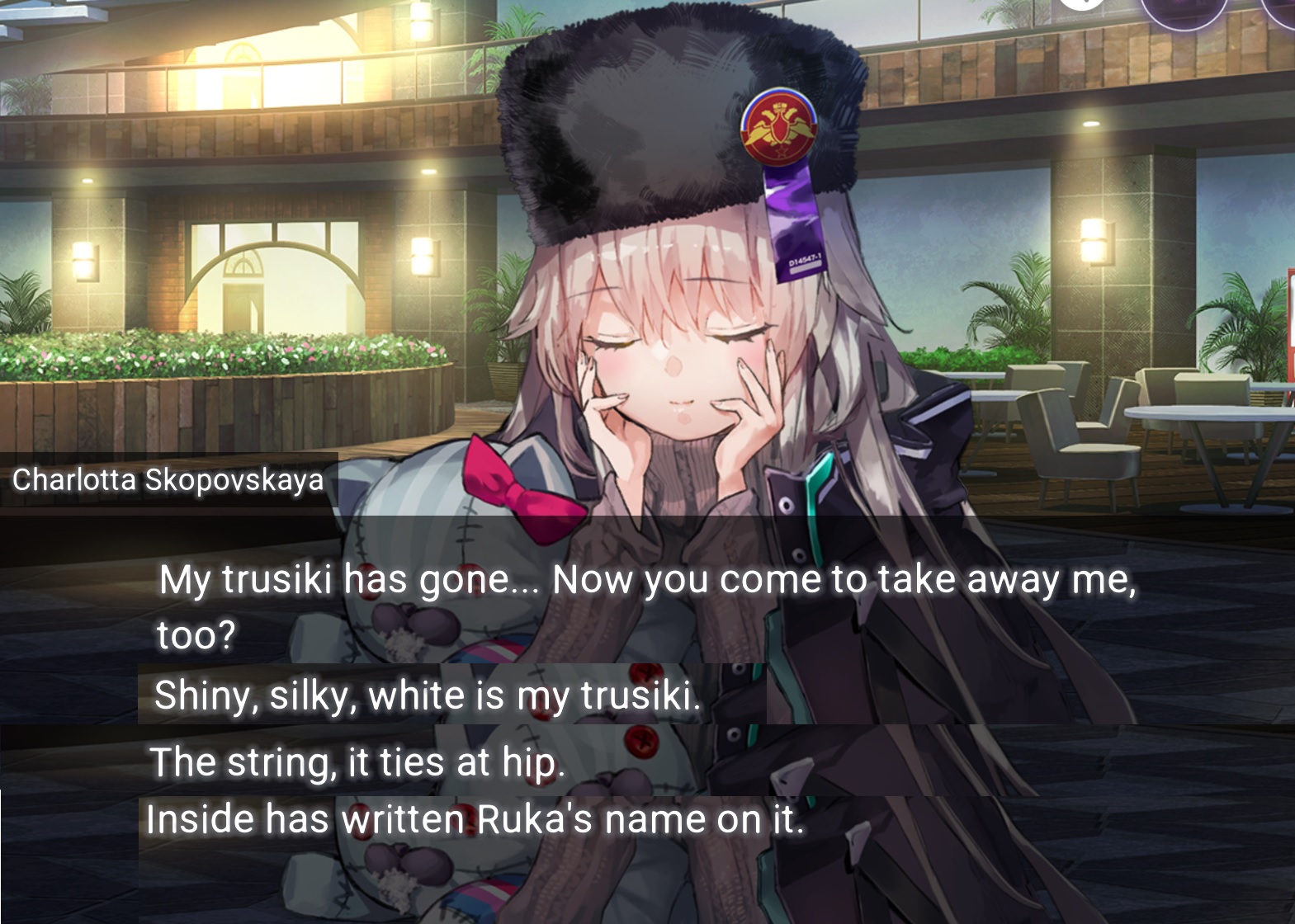 Сейчас увидел чужой скрин летней Тамы и понял, что "пересекающиеся" фразы в лобби это общая практика, потому что в пиджачной версии она говорит то же самое. То есть для разных анимированных меморий одной девочки они не делают целиком тематический набор реплик, а разбавляют его какими-то базовыми.