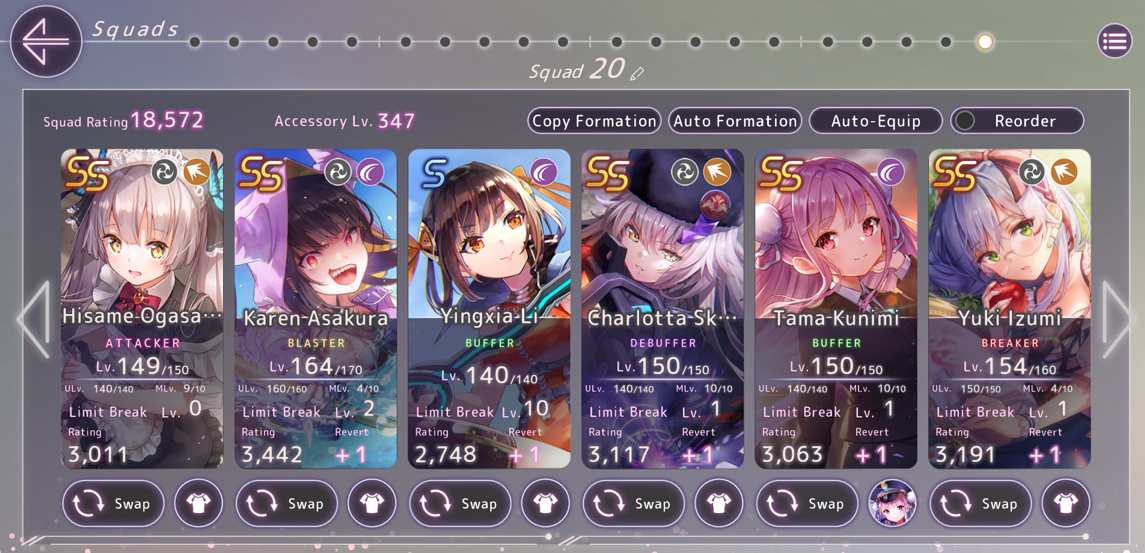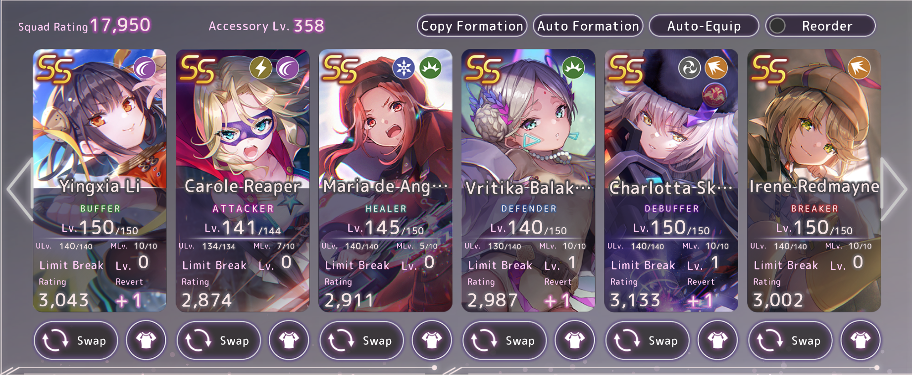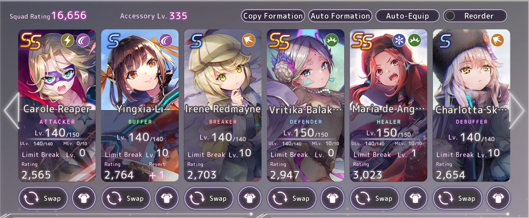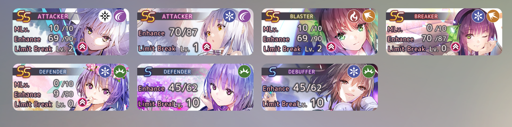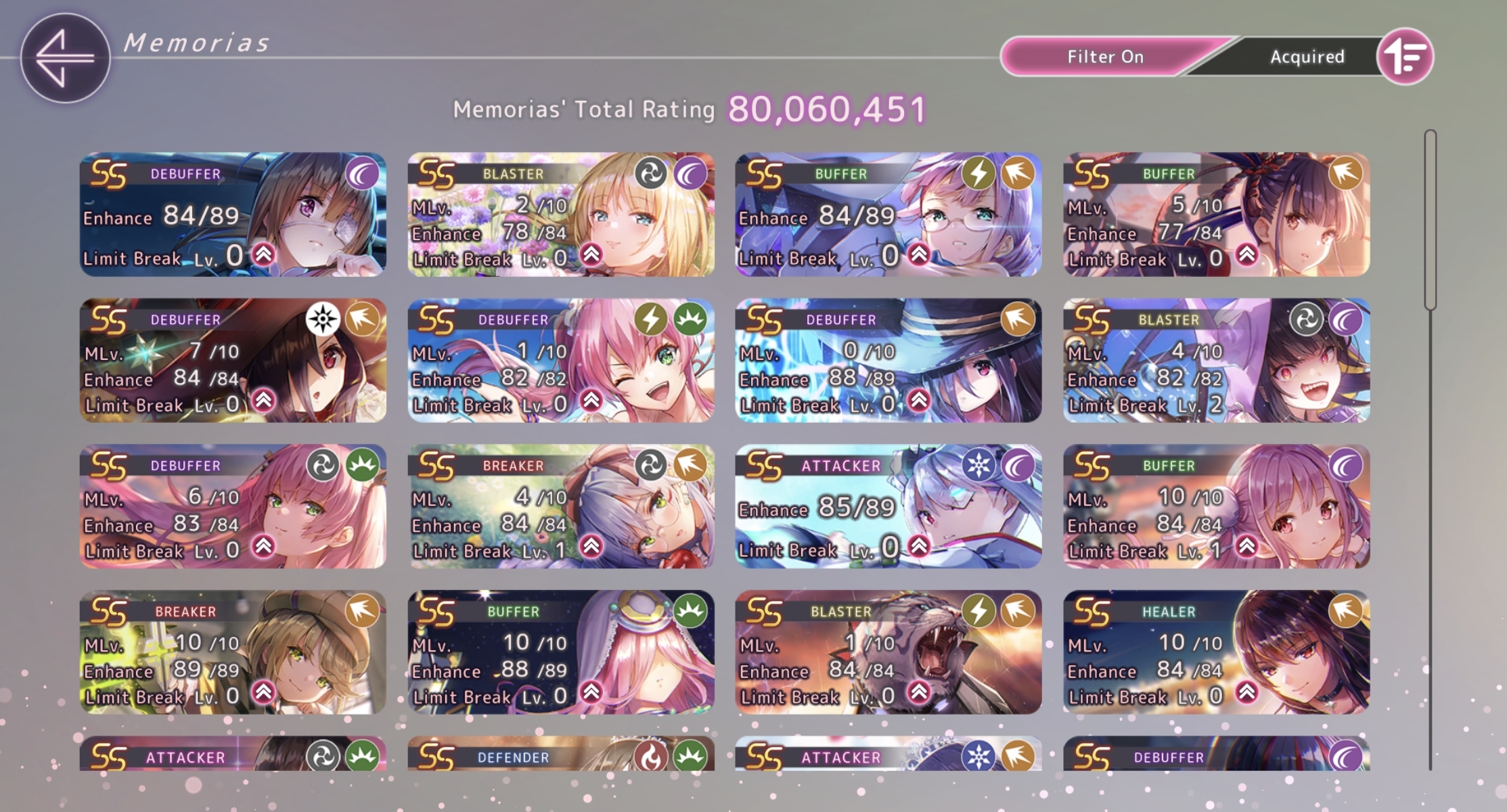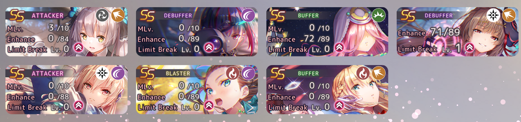 Всем спасибо за советы. Я и забыл насколько тяжко тут реролить, но вроде повезло с первой же попытки после прохождения первой главы. Из рекомендованного в треде баннера пришла Риза и Рука. Полный скриншот команды прикреплю, но на данный момент встал вопрос: а нужны ли мне 3 хила в одной команде? Судя по советам стоит упарываться в одну команду, а дальше дело прокачки и мой ростер намекает на огонь и разрез. Правильно ли я понял намёк игры и стоит ли добирать остаток команды по принципу совпадающего типа урона вне зависимости от редкости или я сосну из-за капа уровня у А и S- это первое и как сильно я сосну без нормального танка - Чиру я помню, это няшный пиздец, но всё же пиздец, это второе. Откуда столько SSок я так и не понял. Они как бы сами по себе появились.