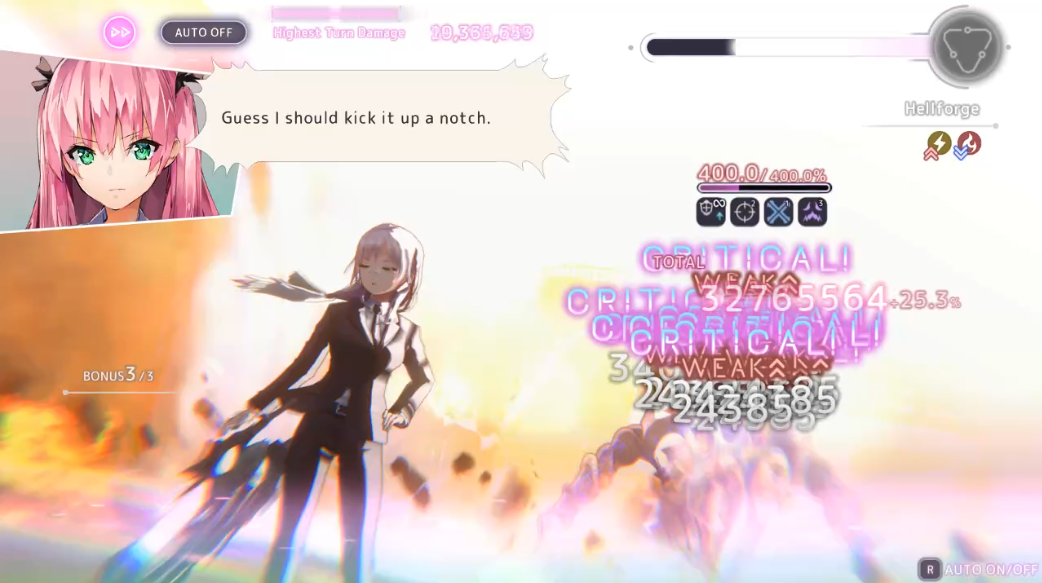 Босс слишком жидкий под мои комбы. Исузу без бафов его ваншотает до Ичико, проблема прям. Хочу чуть продамажить перед завершением но если 3 стака крита и 2 глаза на Исузу то все, вылетает 27кк и он лопается. Остается лишь ждать когда боссам хп поднимут. Кстати попробуйте од3 набить и дать ему сходить, он там скрытую концовку показывает, я оценил.