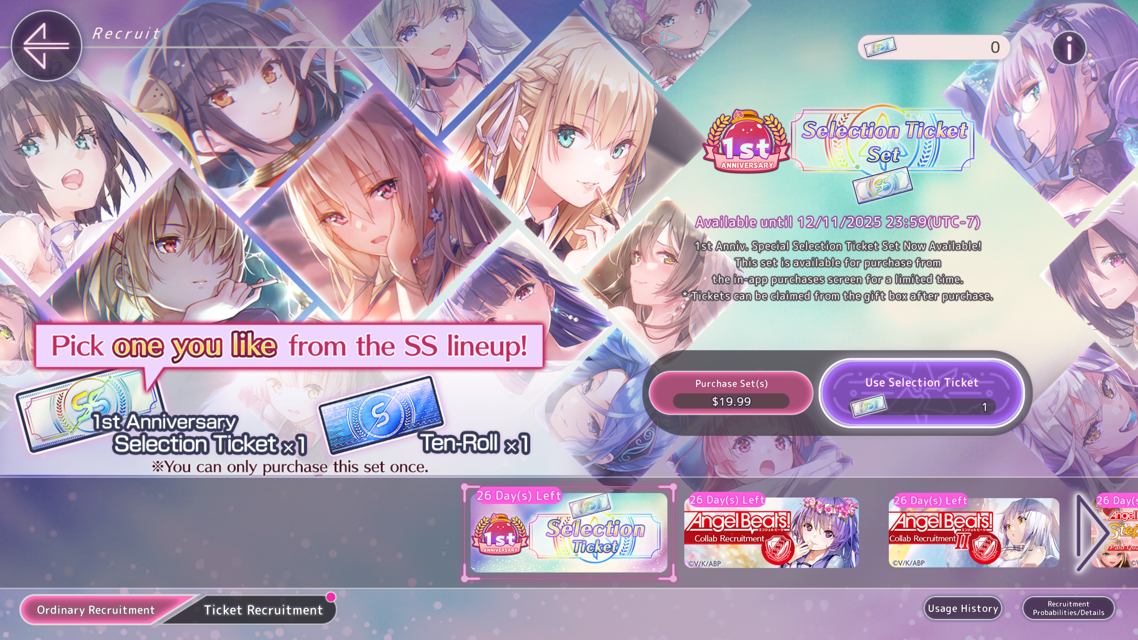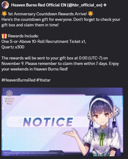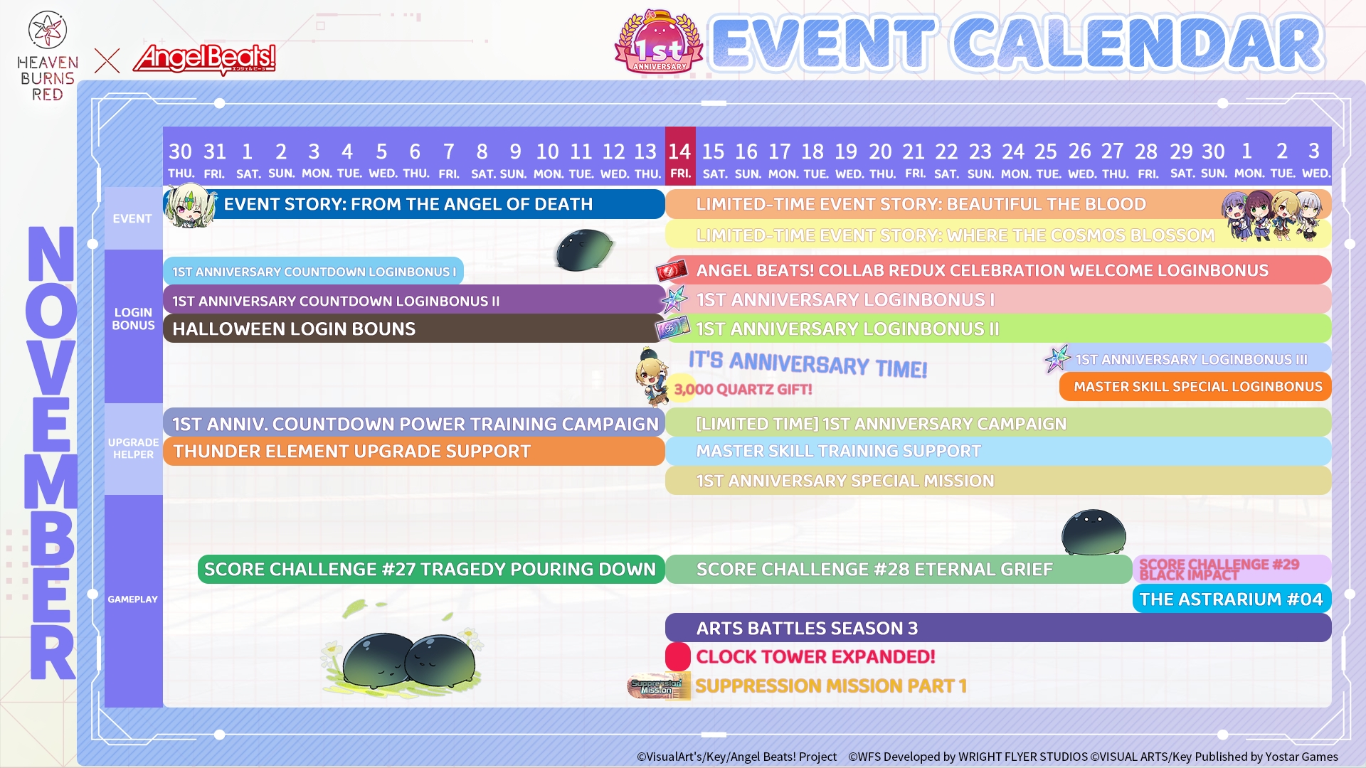 Оказывается под годовщину и коллаб запущен веб-ивент с рулеткой. О нем три дня никто не знал, потому что в официальных новостях его НИКТО НЕ ЗАПОСТИЛ. Интерн-кун, ну ебанарот. https://heavenburnsred.yo-star.com/collab-angelbeats2/ В день можно делать три спина. Может кому-то удастся получить кварц или билетики, мне пока не дропнулось ничего кроме мусорных книг опыта и раковых шкурок.