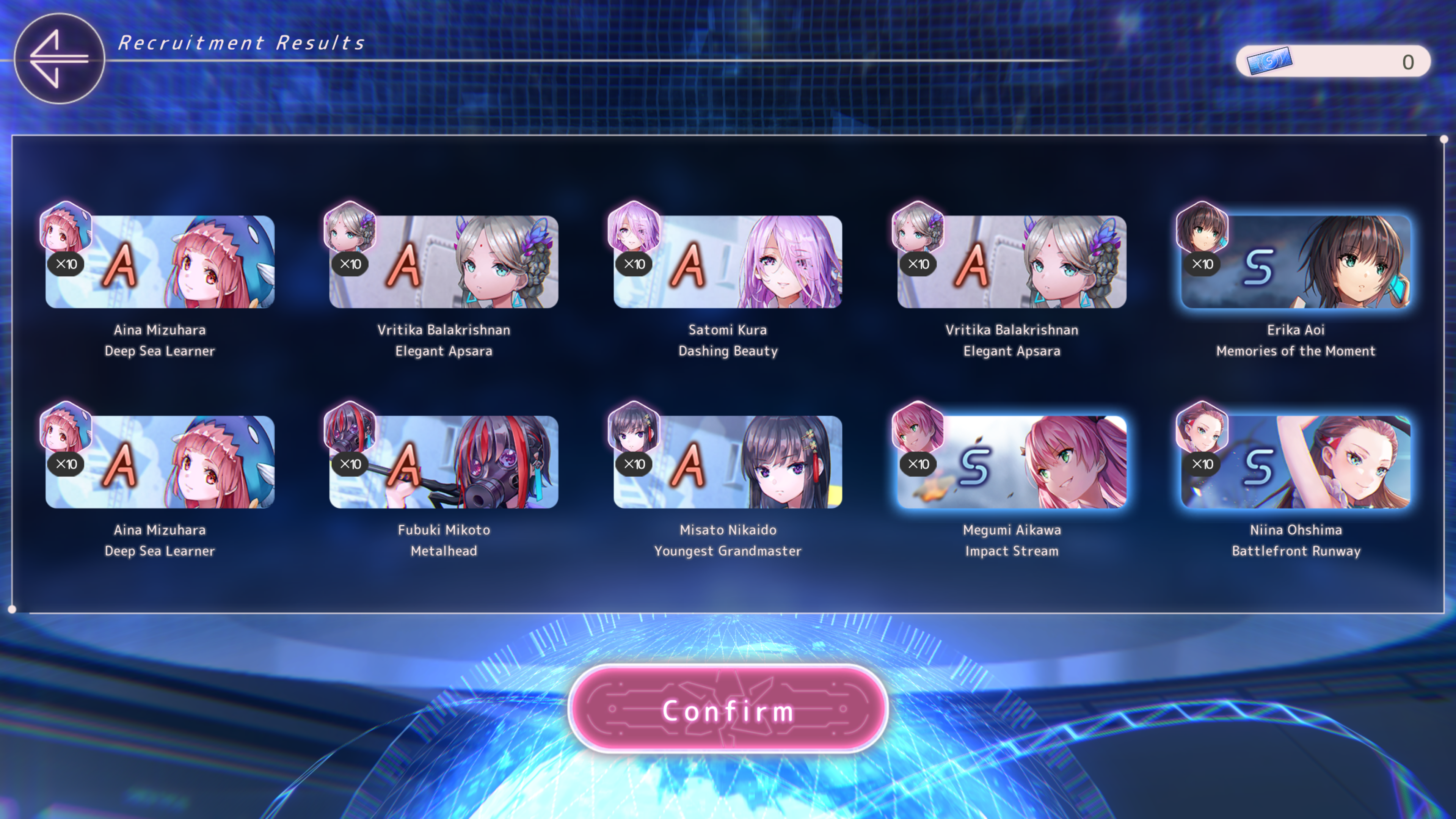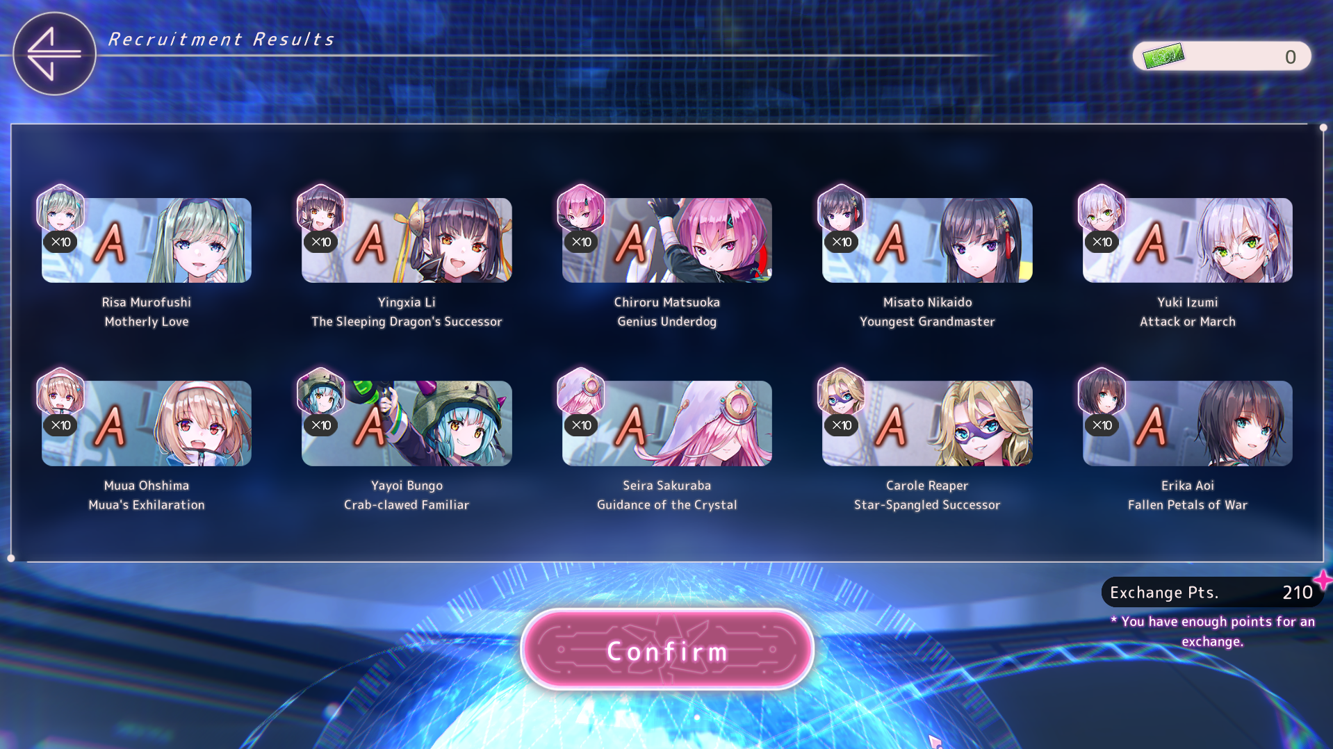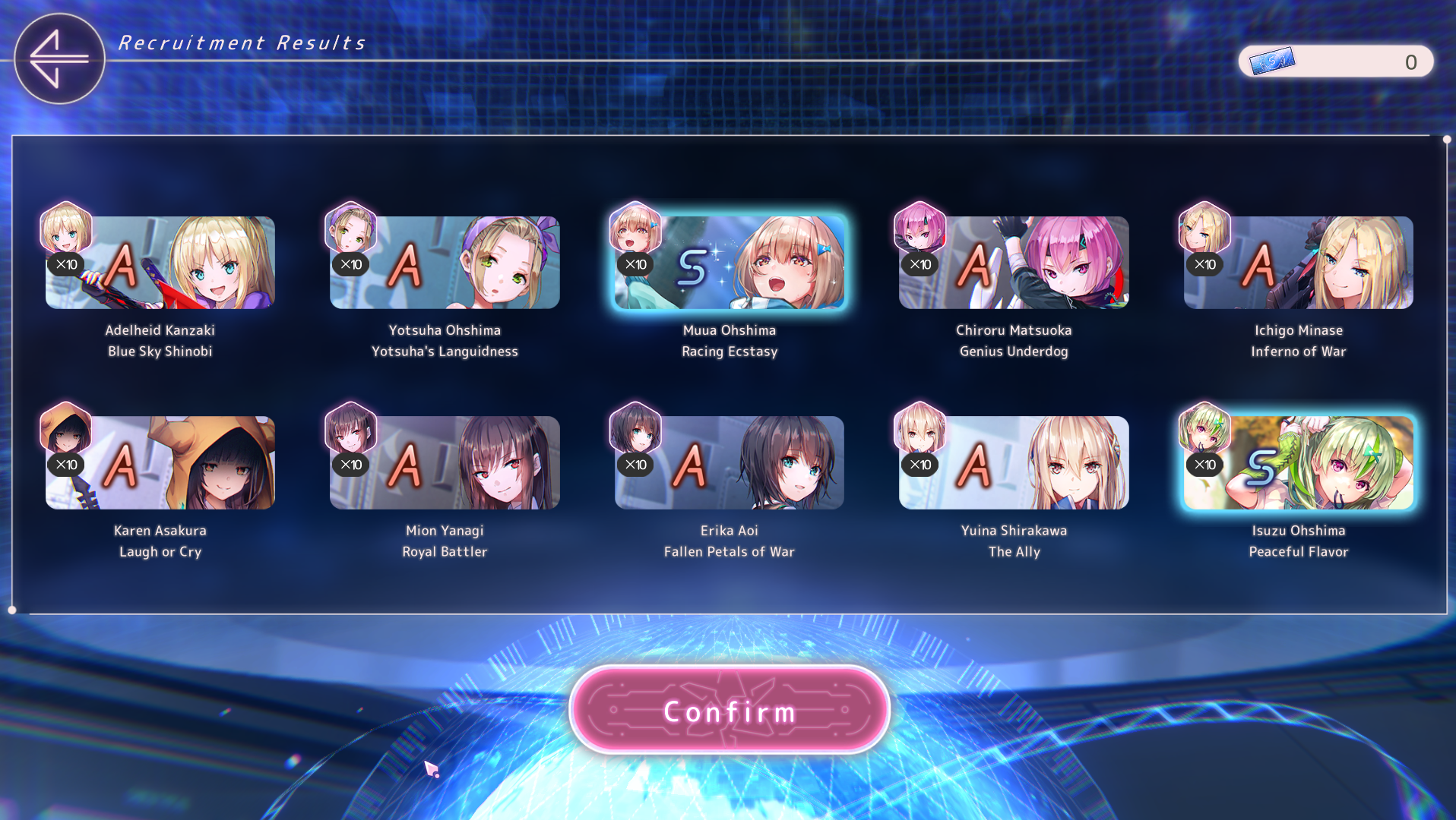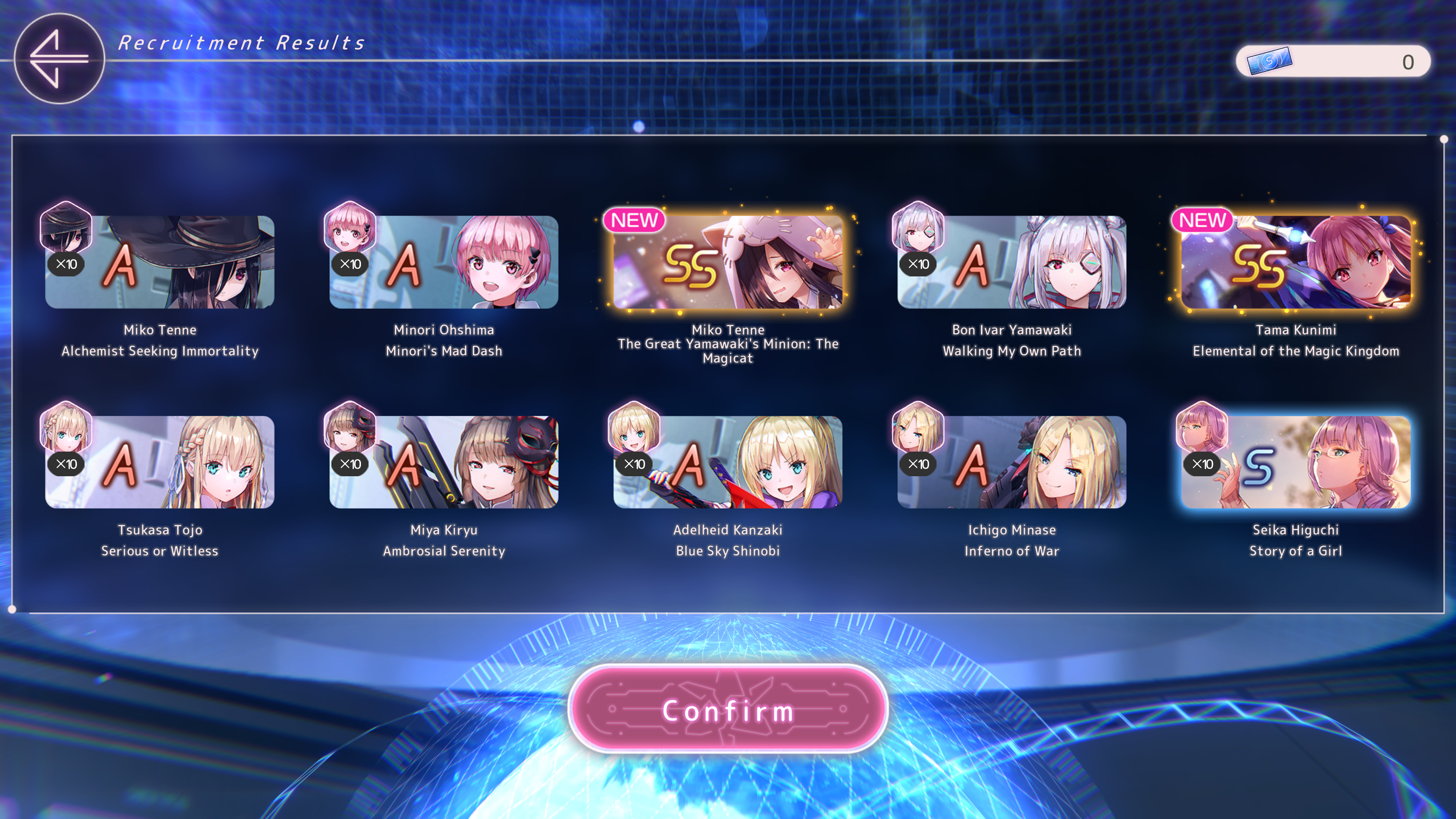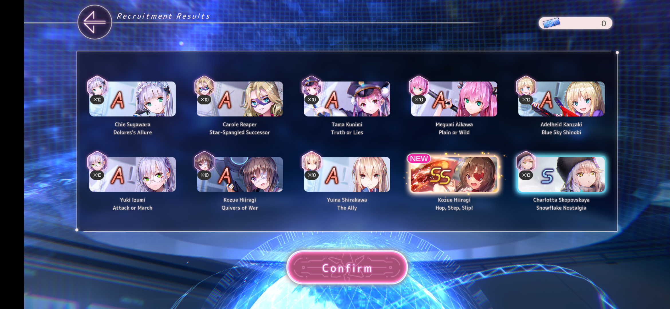 Ну вот теперь как олд Из баннера выбил Шро, Ёцуху и Юину, маловато вышло конечно. Еще Муаа добрал за спарк, остальные 150 еще подумаю в кого залить. Может просто добрать сс1, которых не хватает, хз. Но "правильней" наверное было бы Инори лб2 дать на 100 спарка ради статов для Инори2