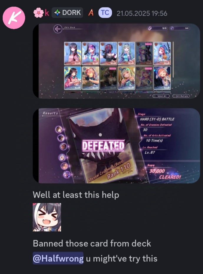 Видели обновленный жп тирлист на тожо файлах? Я если честно офигел от увиденного, а именно ботом тир мемории. Туда очень страшно и больно смотреть, особенно тем кто Мегуми спаркал дважды. Ну и то что там на дне тиров мемории Цукассы и Карен. Там же гдето на дне пляжная Аои вжушк. Карен никогда не была т0 персонажем, и то что они с ней сделали это омерзительно. Умеренности никакой. Если это не преувеличение как они это любят делать то это конечно весело кому то было пакрутить за бабки персонажей которых опустили до уровня Бьякко1 по урону.