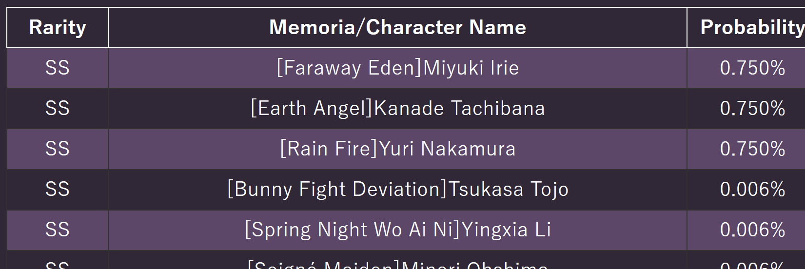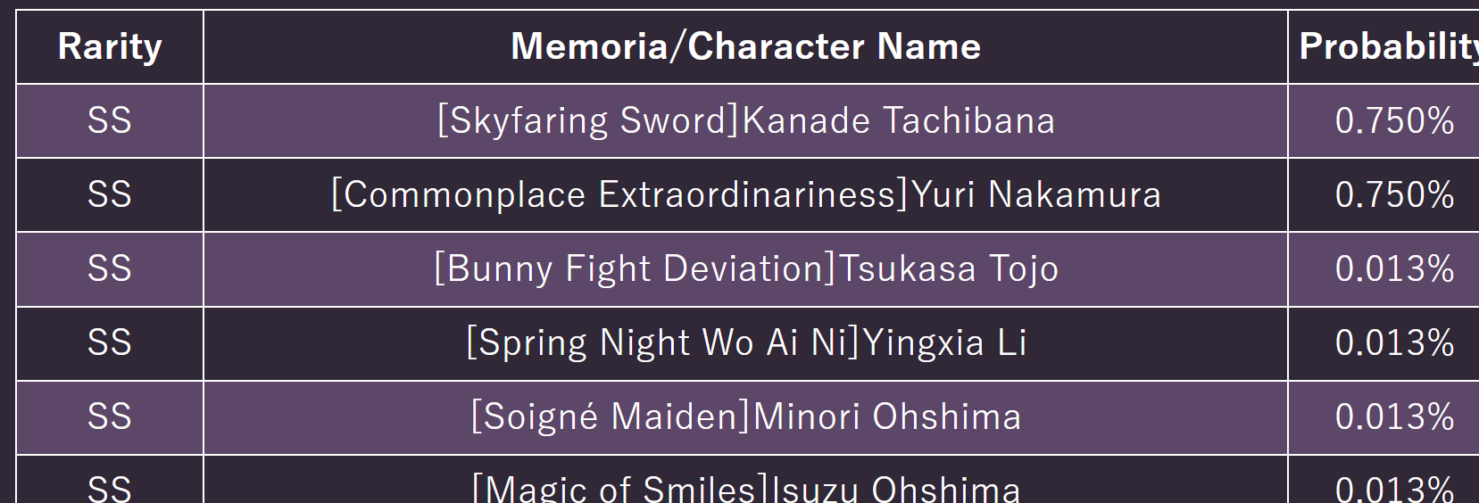 >>5885548 Это будет селекторный баннер. Выбираешь 4 целевые SS1 мемории и выпадать не будет никто кроме них, эту таргетную четверку можно менять в любой момент. Также есть спарк за 50, очки спарка не сгорают и копятся сколько нужно. За каждый ранг аккаунта выдается по 2 зеленых билета, так что 105-е олды могут рассчитывать на четыре спарка в первый же день. Потом эти тикеты будут капать за еженедельки.