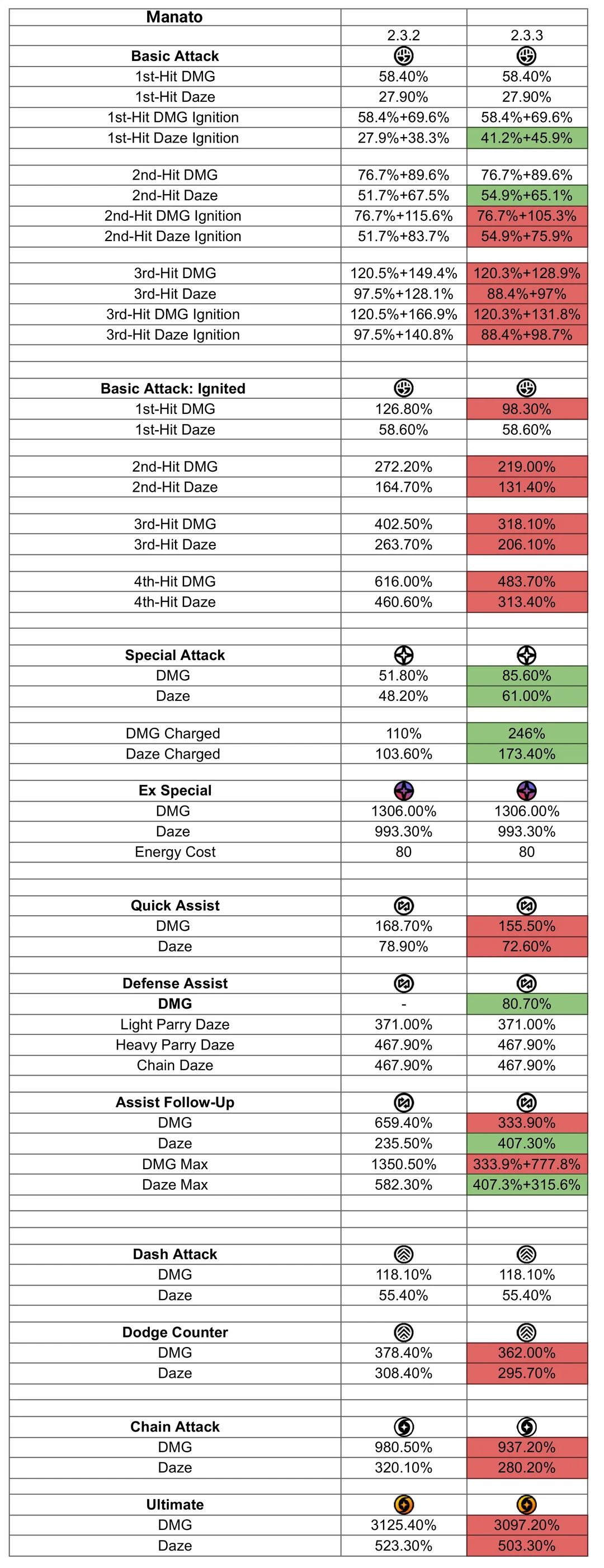 Norano Special can now only be triggered once every 10 seconds and can now be charged Ignition Crit Rate 15%, and now gives 20% Fire DMG M4 HP 10% --> 8% M6 Fire DMG per stack 4% --> 3%