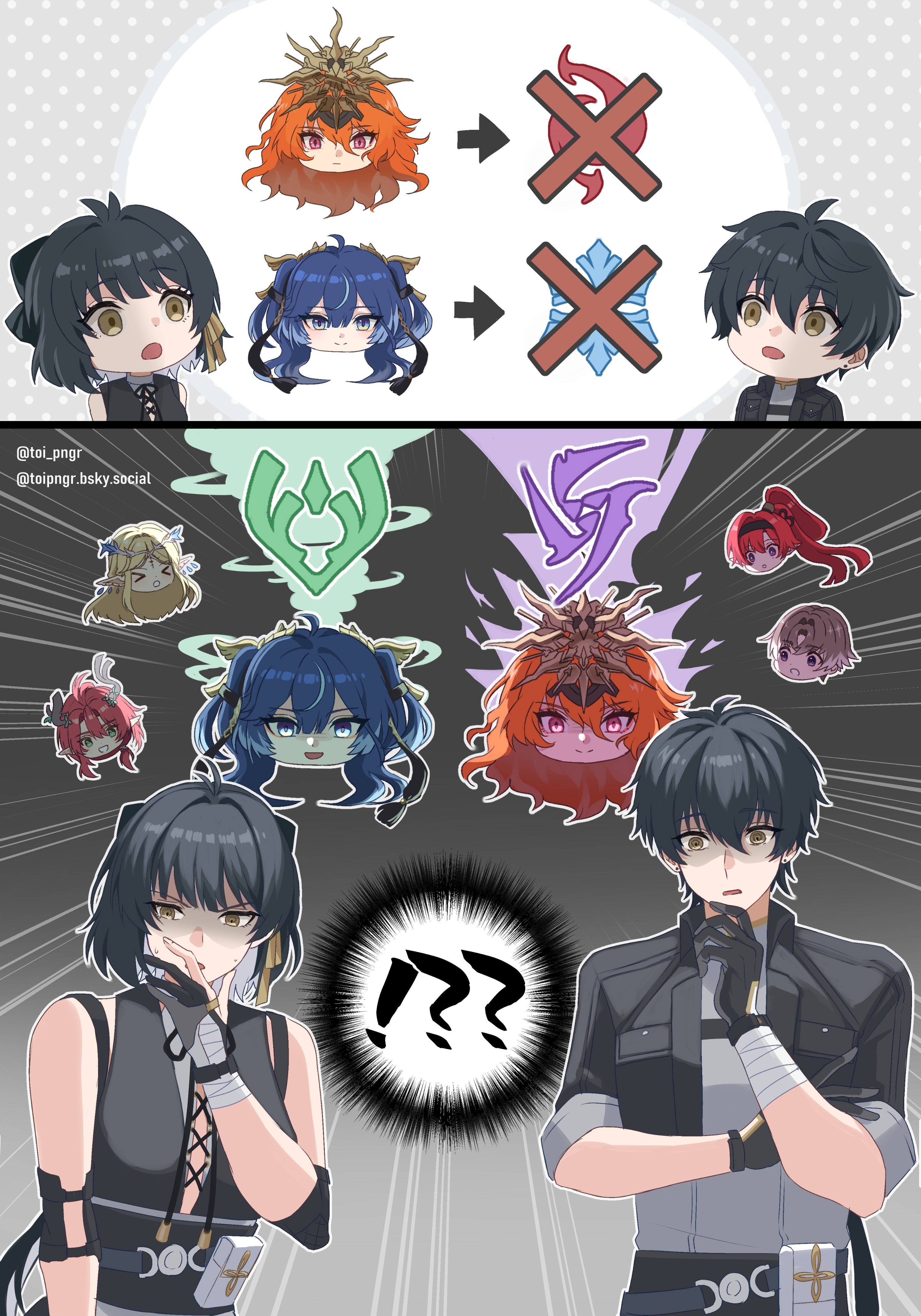 В идеальном мире так и было. Да и в гашне это работало, по крайней мере с некоторыми реакциями первого порядка и отчасти с электрореакциями. И именно поэтому ляо стал высирать именно кокблоки в виде ночного духа, а теперь вообще лунные реакции. Ему не нравилось, что как бы он не наращивал мобам хп, люди умудрялись собирать сборки такие и используя механику реакций высирать миллиарды урона. Саму механику Ляо менять не решился, потому что поднимется вой, и вместо это решил вводить кокблоки.