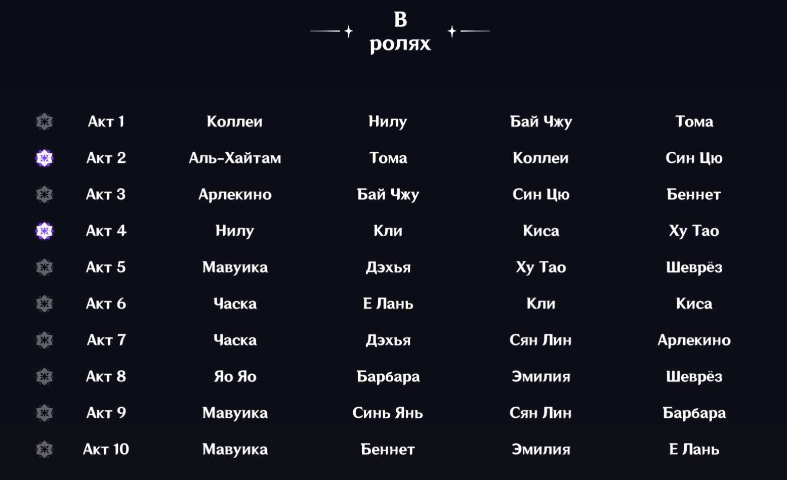 Веселый отряд. Синцу(дендро сет Леса) собраный в восстанову. Лума (серенада шелковой луны) Куки(ночь открытия неба)-сет с критом из нодкайфа Ну и 4й Невик или Сахароза. Сет с критом из нодквйфа работает на всех персах и не обязан быть на нодкраевце. Тут будет 30кш как я понимаю и КУ 100. У меня нет артов и попробовать я не смогу((