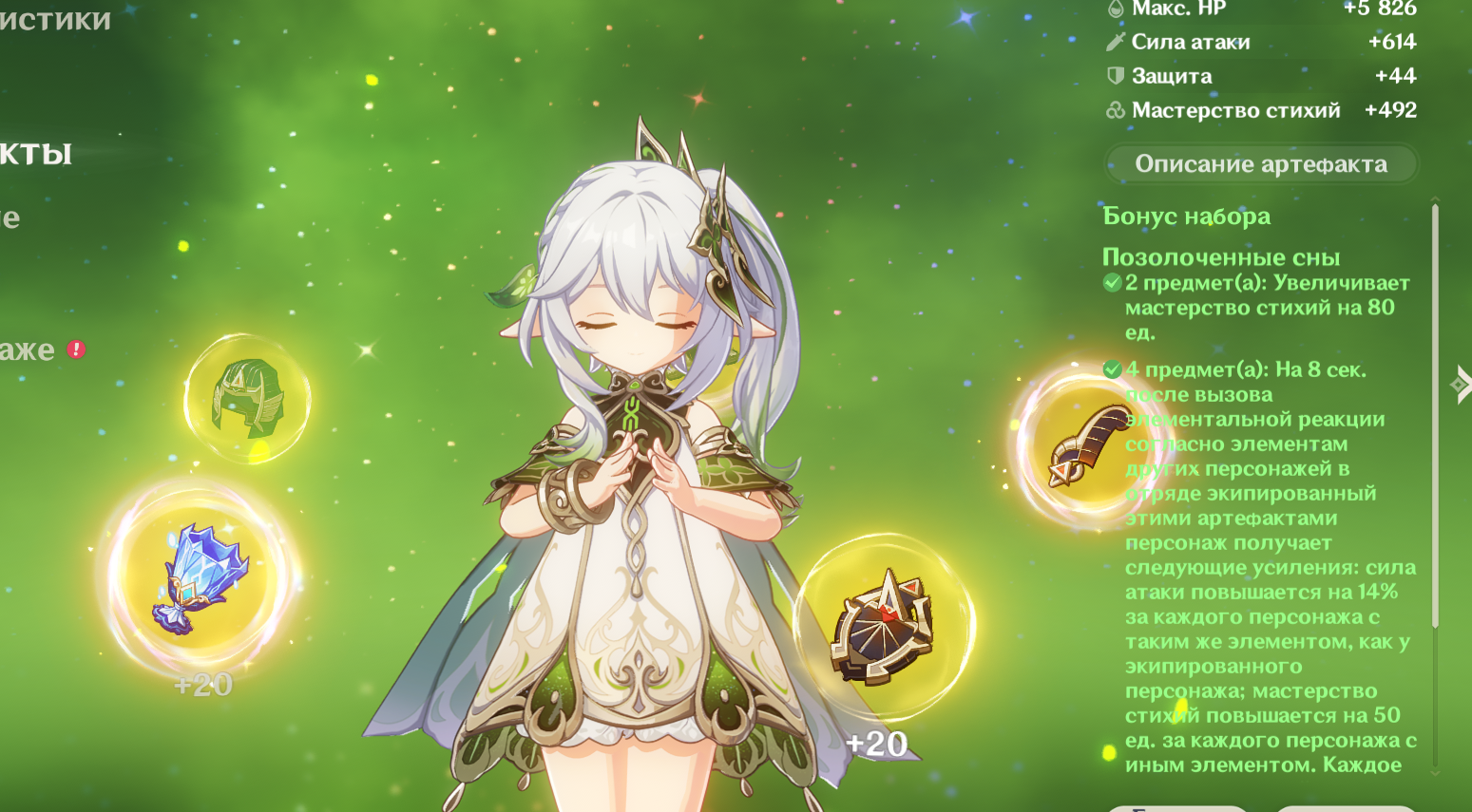 >>5575347 К слову, если нацепить Дендро Сет на Лауму, то она тоже по сути бонус в +15% дендро урона не получает. Так что на нее я нацепил Гилдед Дримс, в идеале Дендро Сет надо на Нахиду и вместе играть, либо на другого дендро в команде, ну либо вообще на кого угодно получается, если вариантов нет.