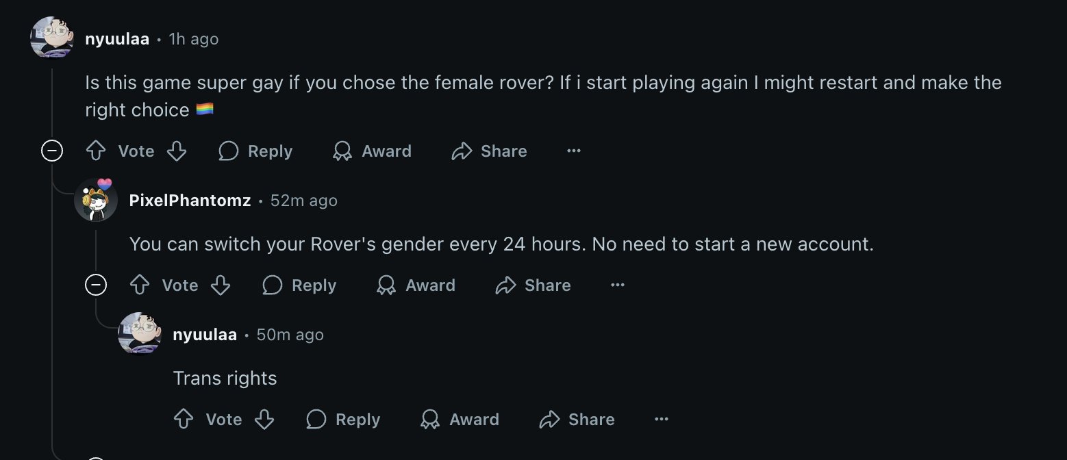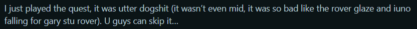 Кстати, в твиттере умеренно побомбили с того, как Ровер давал Юноне пафосные обещания на лавочке в середине квеста, после истории с Фроловой. Как тред на это смотрит? Ровер необучаем? Или просто не видит себя тем же человеком из прошлого цикла?
