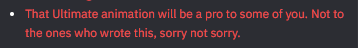 >>5577754 зачем вообще это пишется? чтобы что? от тебя просят написать гайд по игре персом, нахуй надо вставлять свое "мням мне не нравятся анимация ульты, это минус персонажа", кому-то реально не поебать на это, кто-то хотя бы смотрит, какой ник у составителя гайда? слишком много вопросов