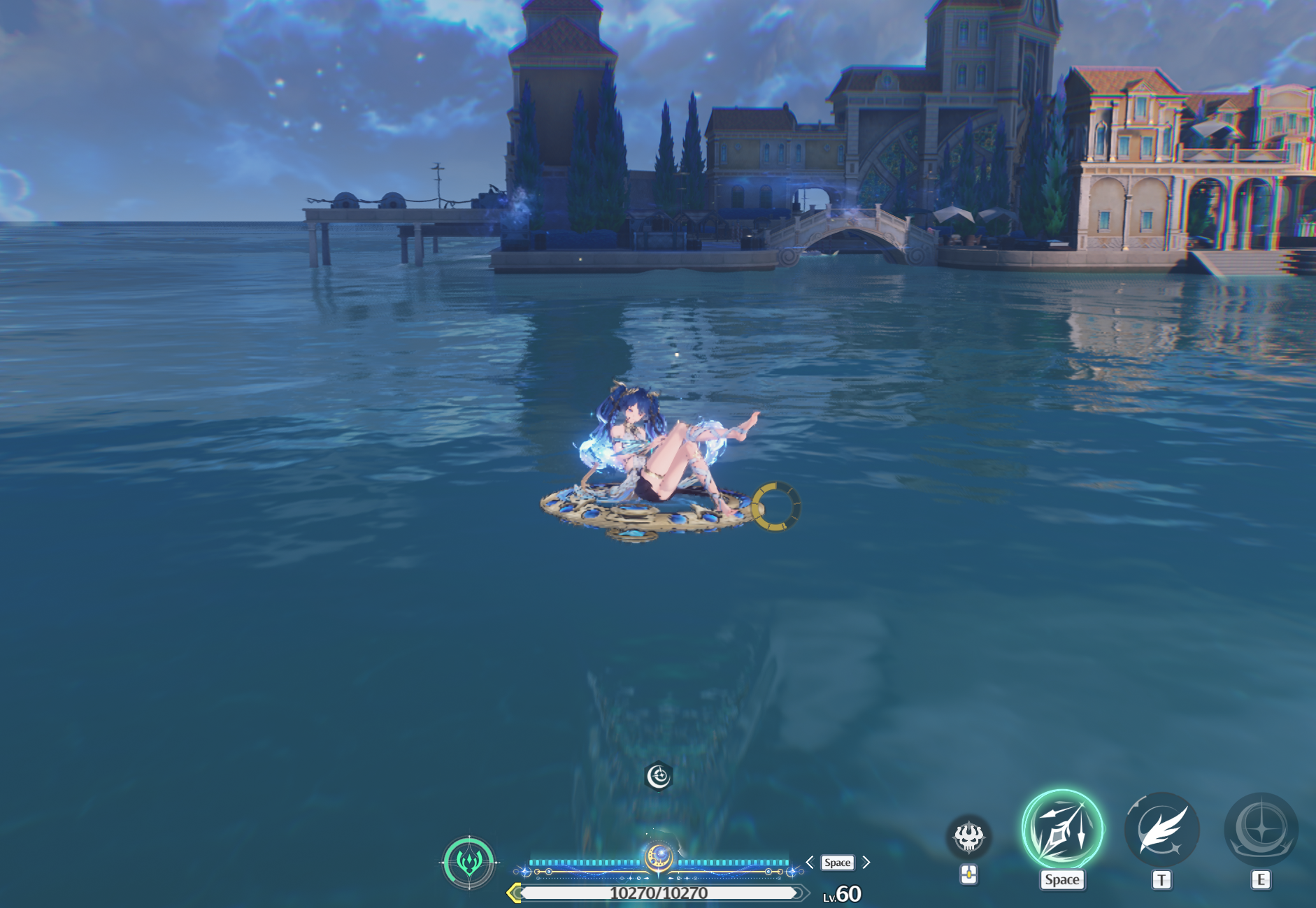 Она на своей "летающей тарелке" может даже над водой кататься. Не очень далеко, правда, т.к. катание упирается в таймер (секунд 10 чтоли), но речку/озерцо пересечь вполне можно.
