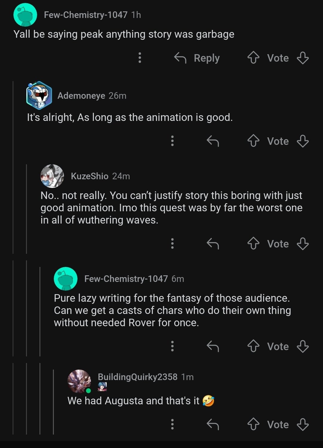 Кому вообще адекватному мужику не похуй на очередной сюжет про апокалипсис? Дайте тупо юшек в сюжете каждый патч а остальное нахуй сразу. Поэтому и перешел на пнг гачи, в Азурке например каждый ивент к тебе клеятся бабы и ты с ними в бане чилишь. Ща бы реально сюжеты какие то там вычитывать в свои 30+. Я думал с этой хуйни уже в 25 выростают.