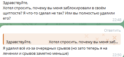 >>5580764 >>5581029 Единственное, что меня напрягает в плане перевода это, собственно, сами переводчики. Вот я как-то говорил, что нанять гастарбайтера с нейронкой было бы куда более адекватно и выгодно, чем соевого падисара, который будет где-то там что-то переводить. Для примера, энтузиаст, который хотел откликнуться на эту вакансию, уже подготовил резюме и хотел неиронично заняться офф переводом Куро (он знает китайский минимум на B-уровне, скорее всего лучше): зумер, который шипперит все, что ходит на двух ногах с друг-другом, ненавидит интелов и лично Писевора, натурально чуть не разревелся, когда я его потроллил тем, что его лесбошипы говно. Когда я спросил, почему он с помощью языка цветов пытается рассказать, что Юно и Августа это канон пейринг, а с Фроловой он это заигнорировал, чел тупо психанул, назвал меня тупым ПГРщиком и удалил комменты и аккич.