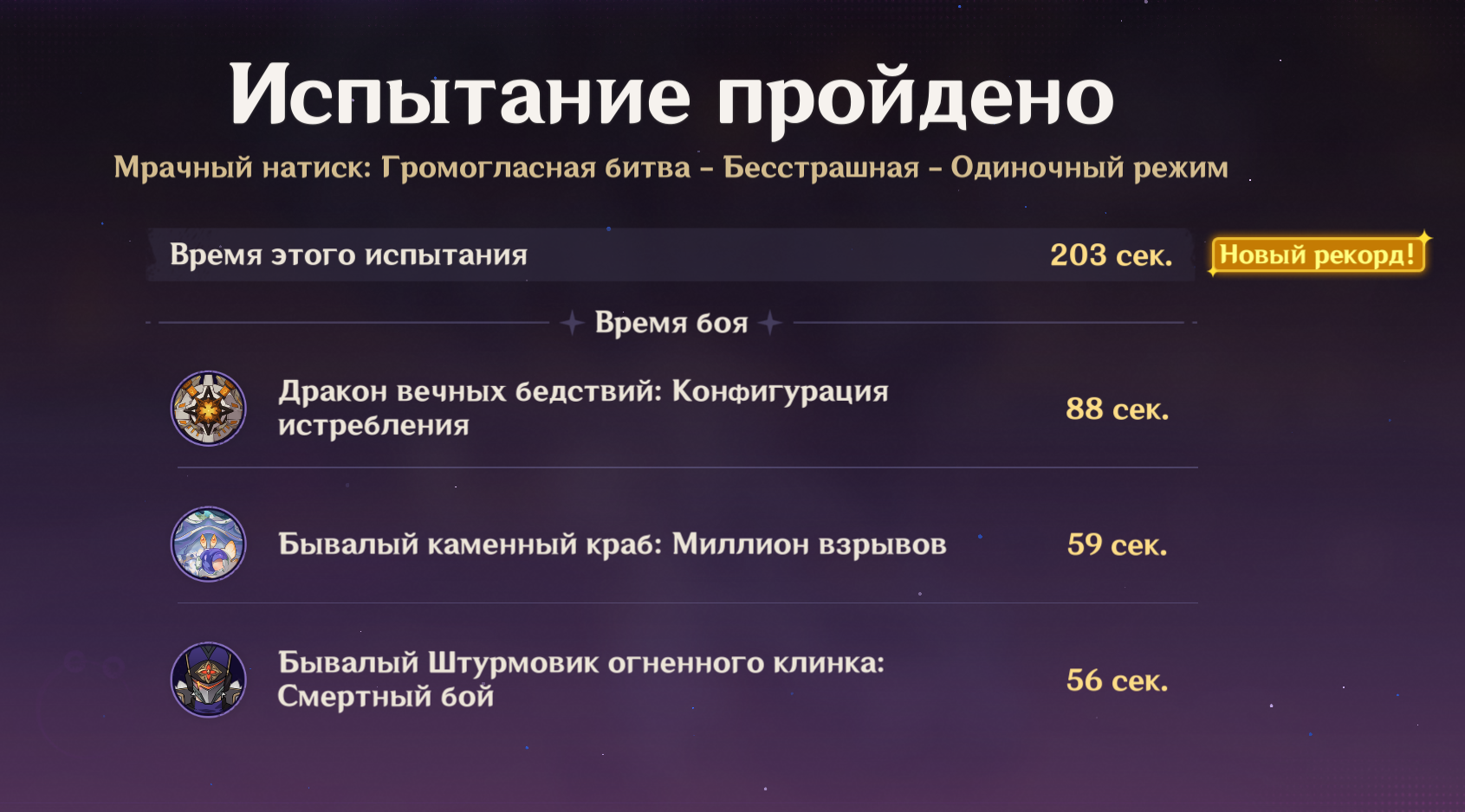 >>5578761 Ну, дракона в конце концов я на с0р0 осилил, пусть и пришлось мопеду перебрать арты, чтоб максимум к.у. выжать, а криты тупо нароллить. Почти полминуты улучшения, лол, просто потому, что ульты на 2-3% больше выдавали дамага. Краба можно и быстрее - Лабуба еще недокачана, Фурина не в МС и так далее.