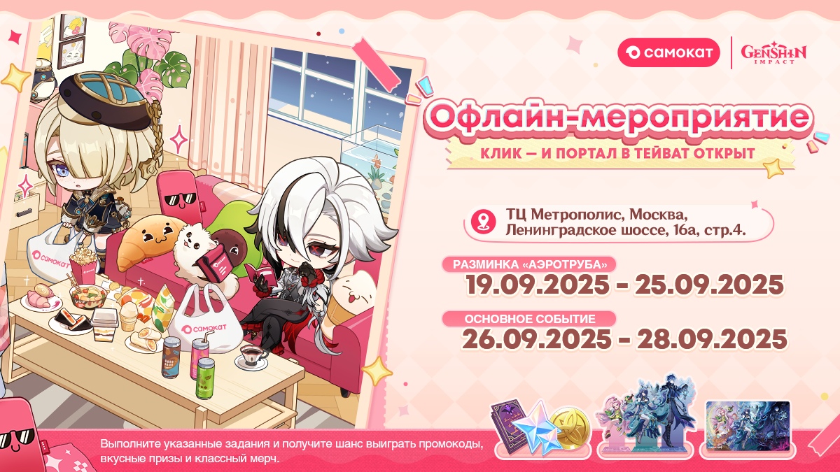 💥 Офлайн-мероприятие Самокат × Genshin Impact вот-вот начнётся! Место проведения: ТЦ Метрополис, Москва, Ленинградское шоссе, 16а, стр. 4.