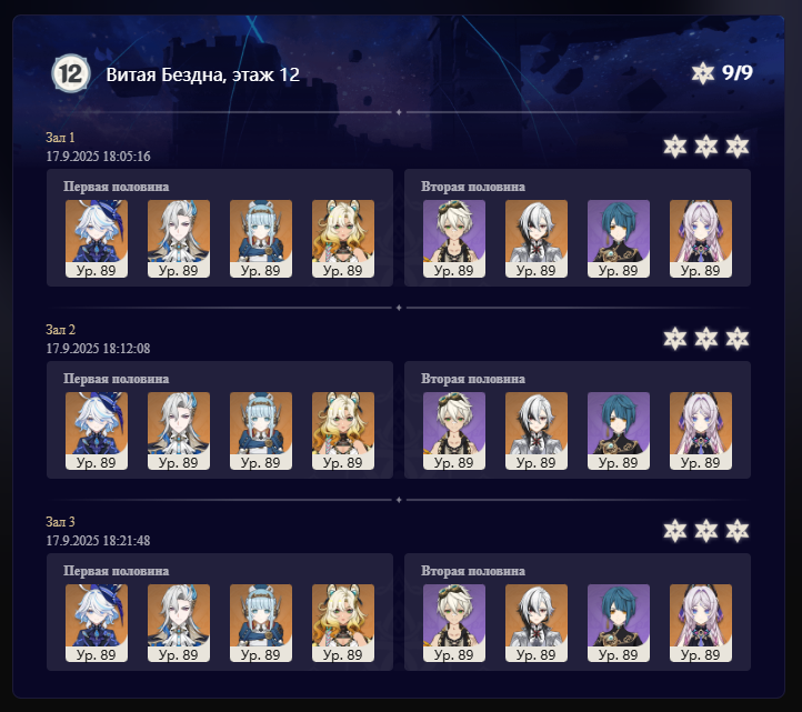 Бездна просто ок. В натиске фейл со второй и третьей комнатой - где Фурина есть, там и закрывается. Видимо жду Кирюшу в третью, тогда впервые получится взять платину в этом режиме.